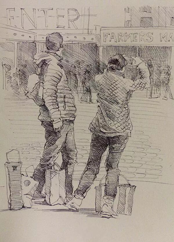 坚持每天一张画!他的速写太牛啦~城市街景、人物全都被描绘了下来~
