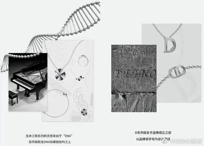 另外还有一个刚出来的品牌叫DEINO黛诺,它主打“钻石不止于圆形”的概念,专门做异形钻。异形钻是一个小众市场,美国大概只有8%的零售商在主推异形钻,大家卖的主要还是圆形钻。在我看来,小众市场的潜力也不可忽视,如果戴诺能够把“钻石不止于圆形”这句话发挥到极致,加上跨界的营销玩法,很有可能就是这个领域的第一。成为这个领域的头部品牌,这样一个认知打出去,市场潜力是无限的。