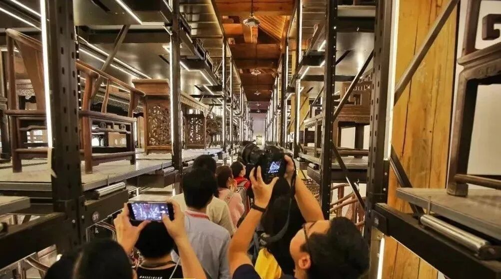 第二部分则运用仓储式的陈列展示了300余件清代家具,对数百件家具文物按照库房保管要求进行陈列排架,缓解了库存压力,给了库存文物更多的亮相机会,此种形式的家具文物展示在国内还是第一次。