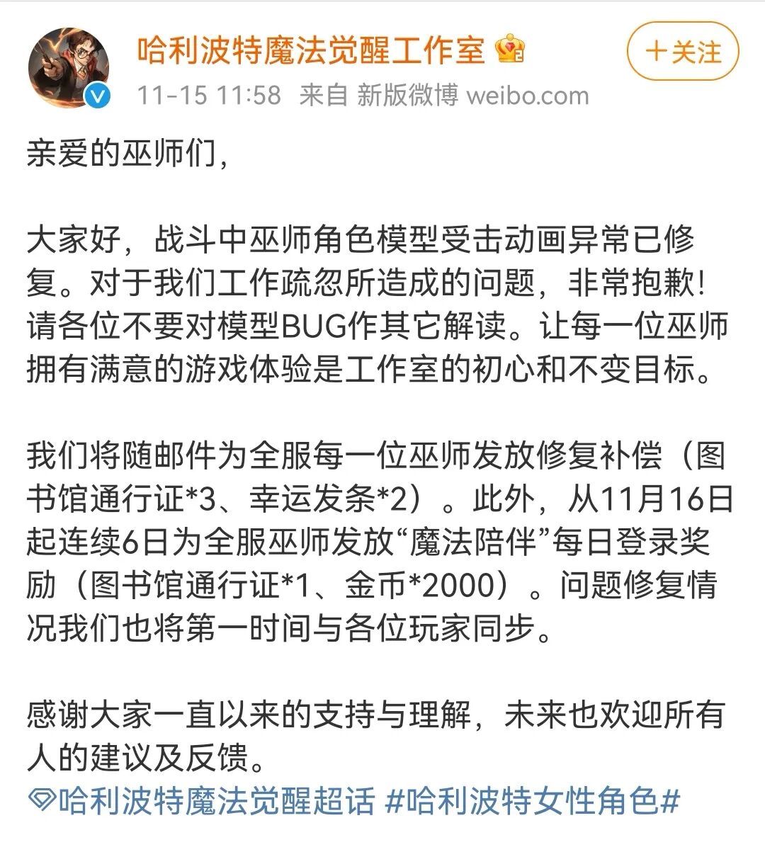 《哈利·波特:魔法觉醒》游戏方的回应。/截图自微博
