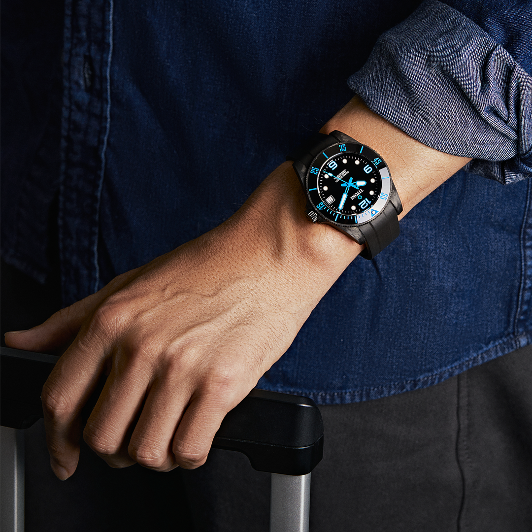 2022年,梅花为 Seascoper 600 潜水表再次推出新作,配备碳纤维表壳,兼具轻量与坚固、专业与时尚。