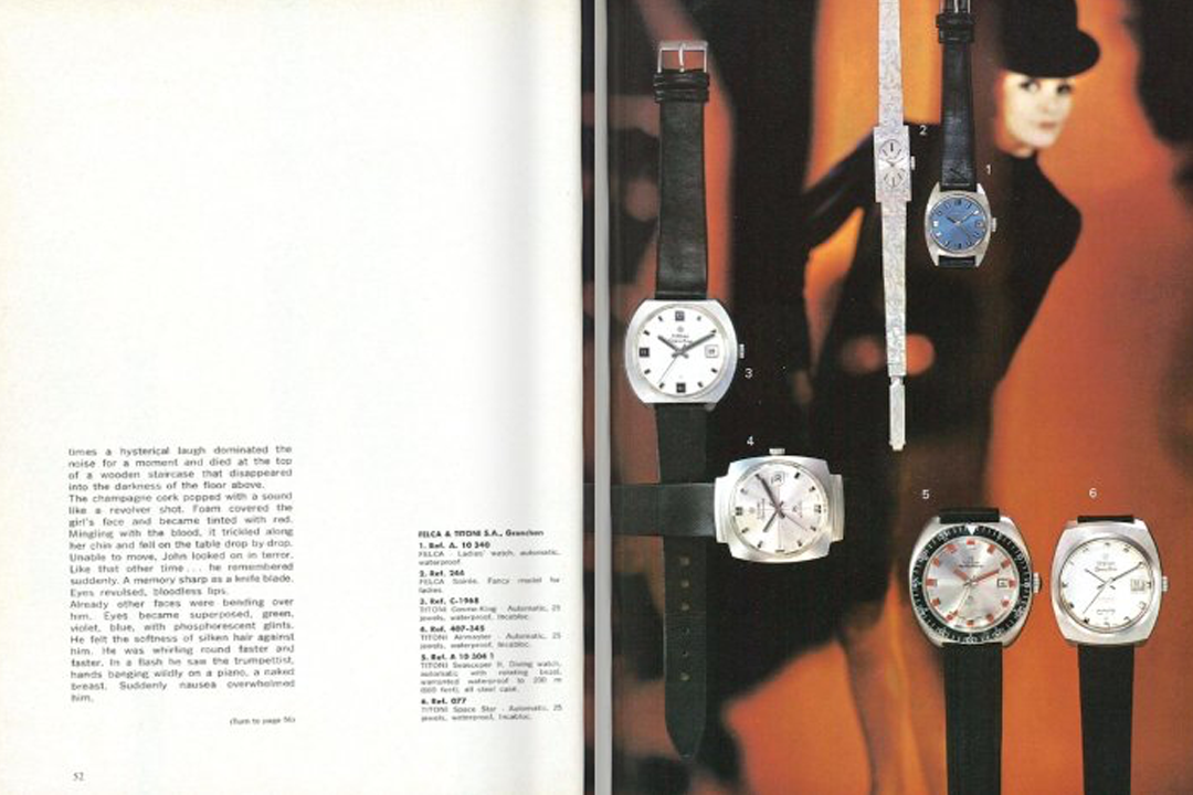 梅花表1960年代的杂志广告 ,右下第一枚为 Seascoper 表款 © Europa Star 1968