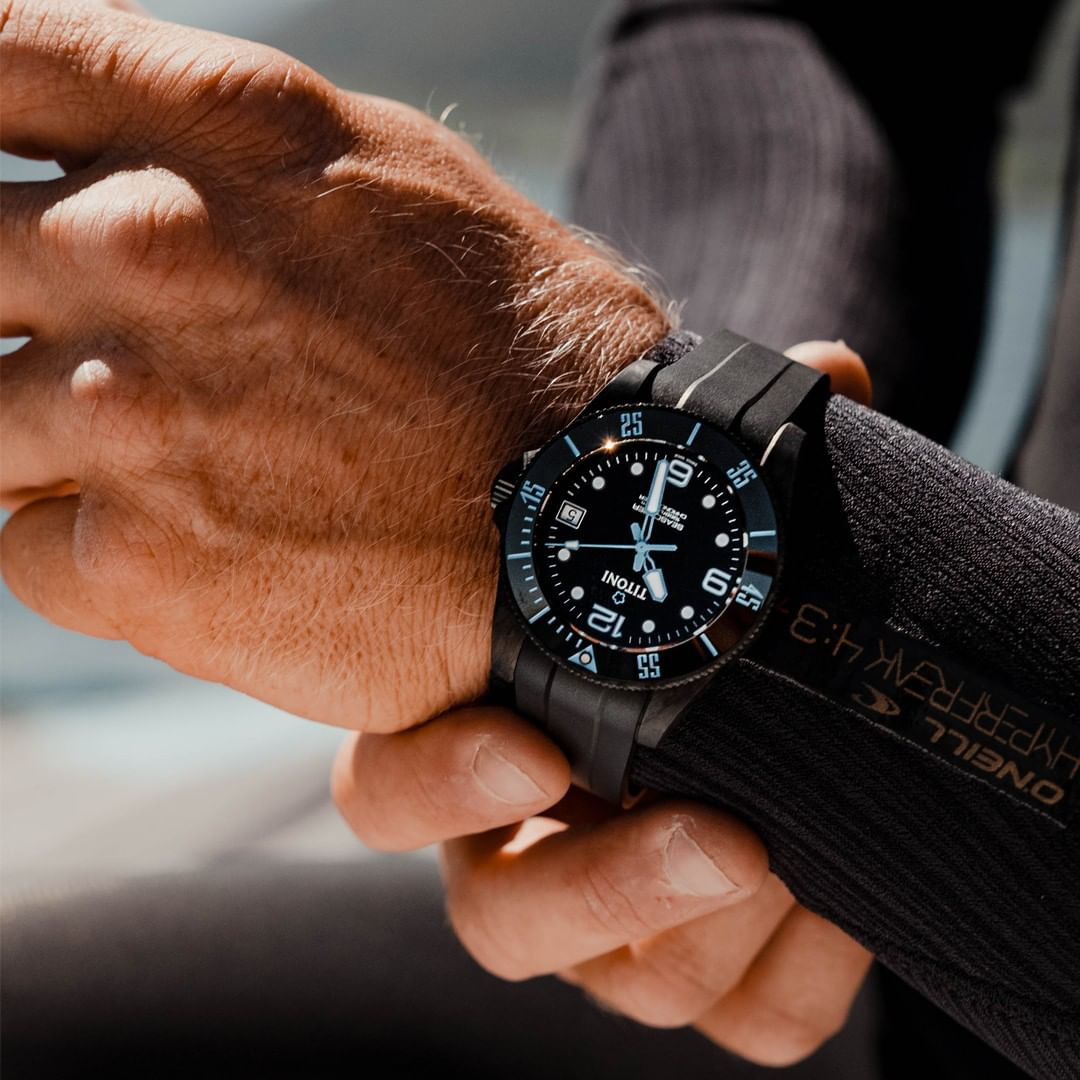 腕表配有两条表带,一条橡胶表带搭配折叠扣,呈现经典黑色时尚魅力,也更适合戴着去潜水。