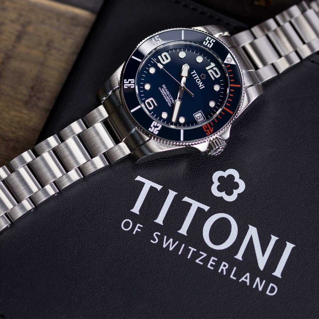 TITONI 瑞士梅花表首款 Seascoper 腕表于1963年面世,是那个年代流行的潜水表款之一,当时名称里还有梅花表母品牌 Felca 的身影,表壳也是彼时颇为时髦的“鲍鱼壳”,或称为“ C ”型表壳。
