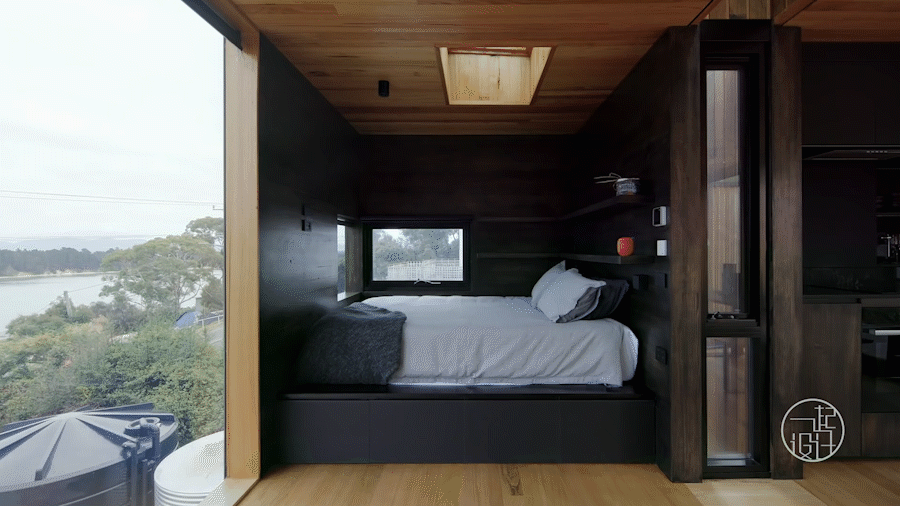 国外比较新的装配式住宅,房子的部件都是在工厂完成的,包括所有隔墙饰面、窗框、机电管路以及固定的集成橱柜、床等家具。设计一体化,同时保持了极简的工业美感。