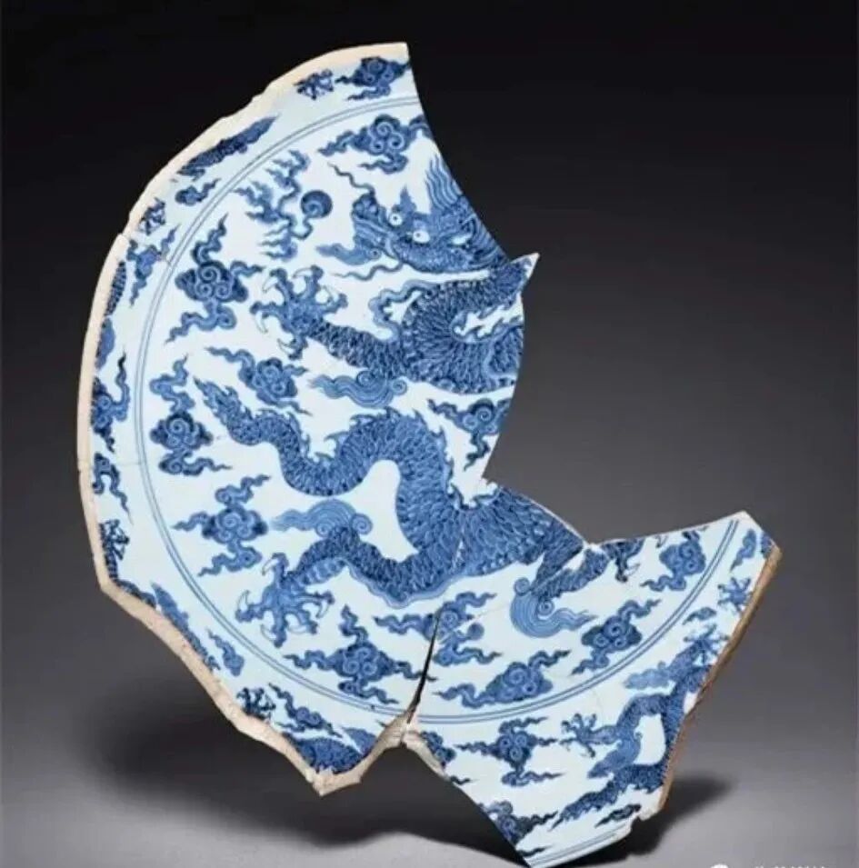 有残缺的青花大盘原为北美私人收藏,