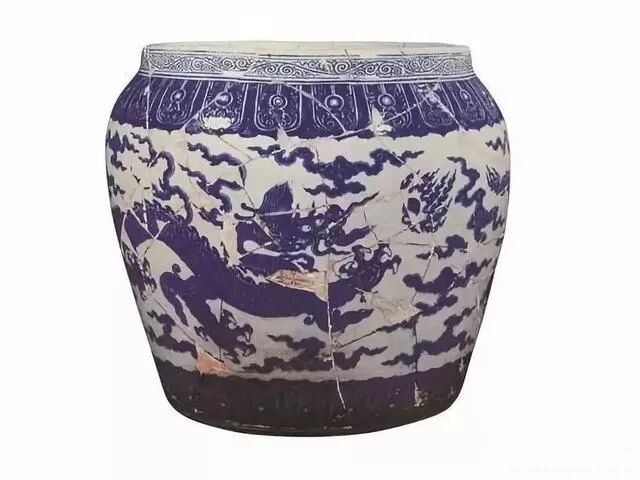 明代正统 青花龙纹大缸(钉了一圈接痕锔钉)