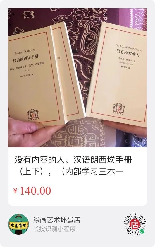 偶尔在网上看到,《没有内容的人》一本书竟然被炒到了1600元,而我们这里140元一套三本包邮,除了《没有内容的人》还有《汉语朗西埃手册(上、下)》。