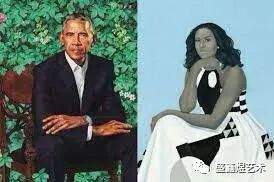 时任美国总统奥巴马为自己和夫人官方肖像揭晓,艾米·謝拉德 (Amy Sherald)作品