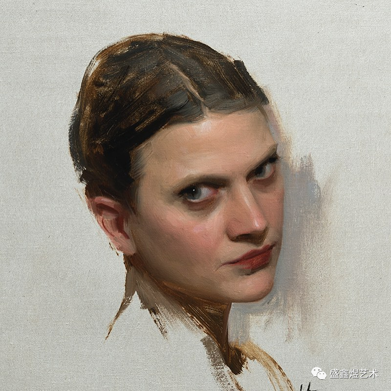 (5)奥德绘画方法的一个重要部分是将对自然的经验观察与诗意的方法结合起来。所以我们绘画的目标不是“照片写实”或严格的自然主义方法。因此,我们不仅会尝试模仿自然,还会尝试模仿人眼如何感知它。这意味着我们要将不太重要的部分做虚化处理,不要让它们干扰肖像画的焦点——五官部分的刻画。