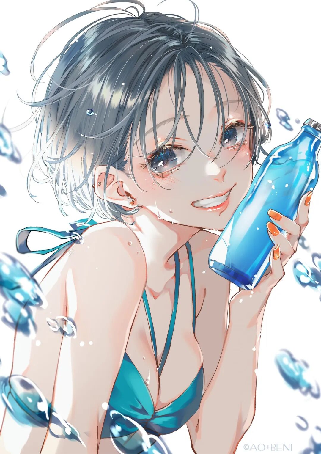 青十紅老师笔下的在刻画皮肤、口红这几个方面都有自己的一套方法,把一个个美少女跃然纸上,只是用看的仿佛就能感觉到女孩子们的皮肤触感。