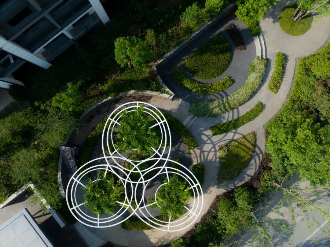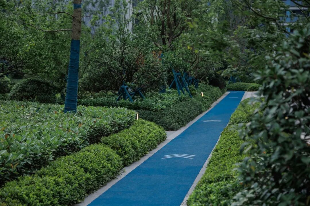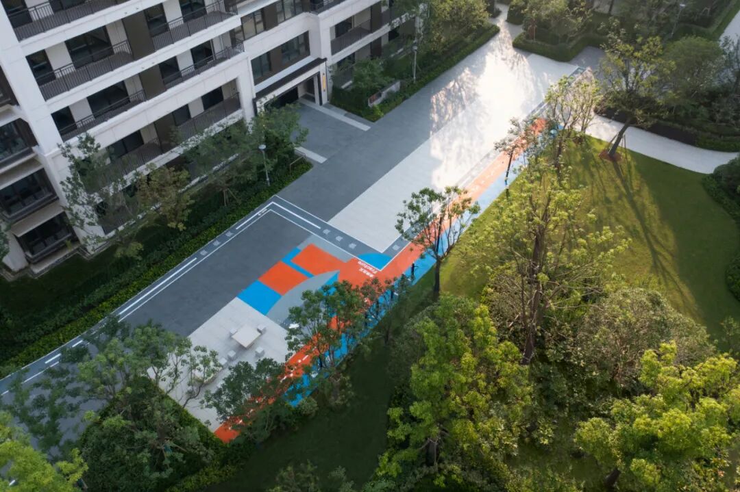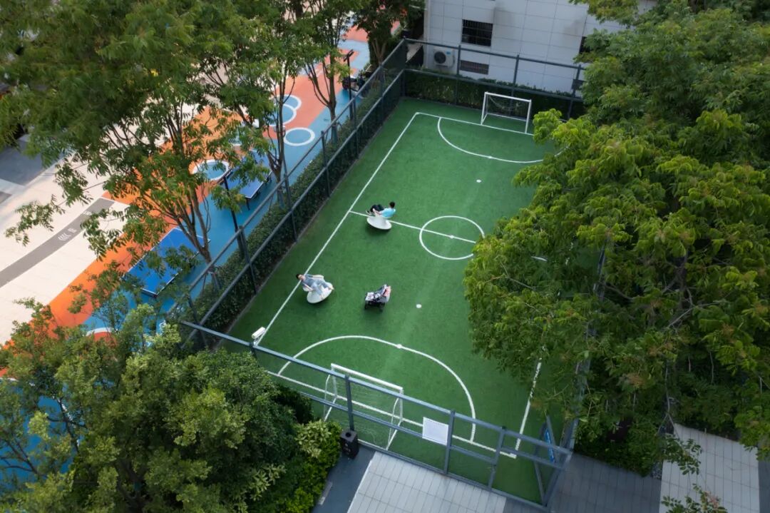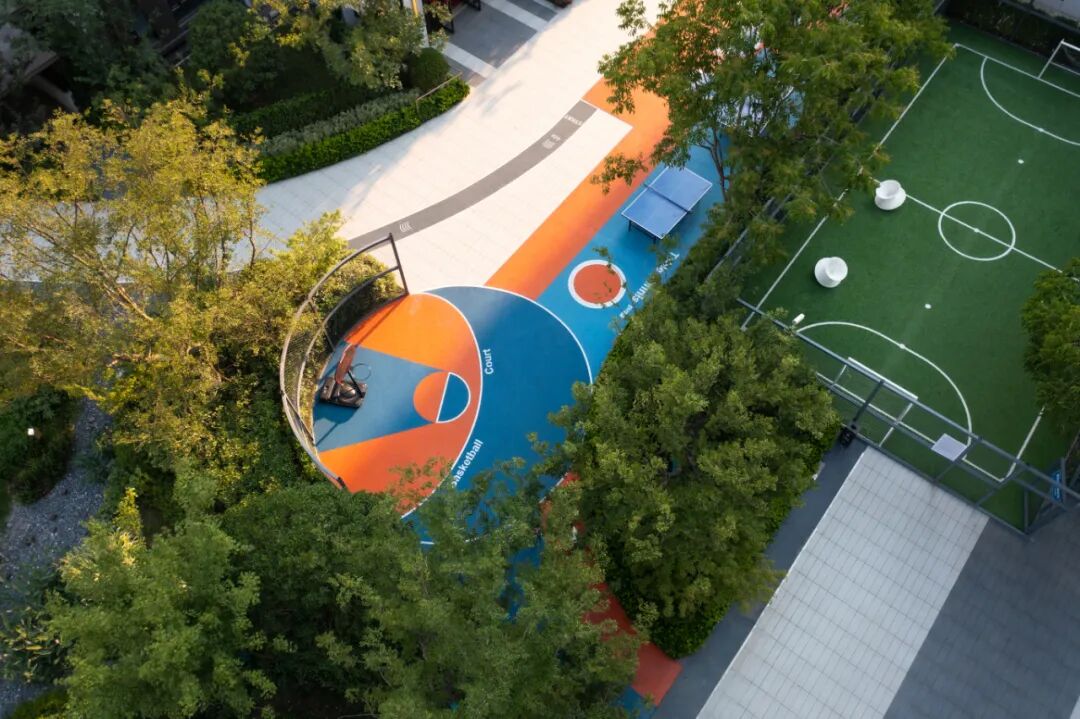 在园区西北侧的密林掩映之下,是园区的活力运动场,小型足球、篮球、乒乓球等球类运动在这里可以通通可以实现,与此同时这里还是园区艺术跑道的终点与起点。