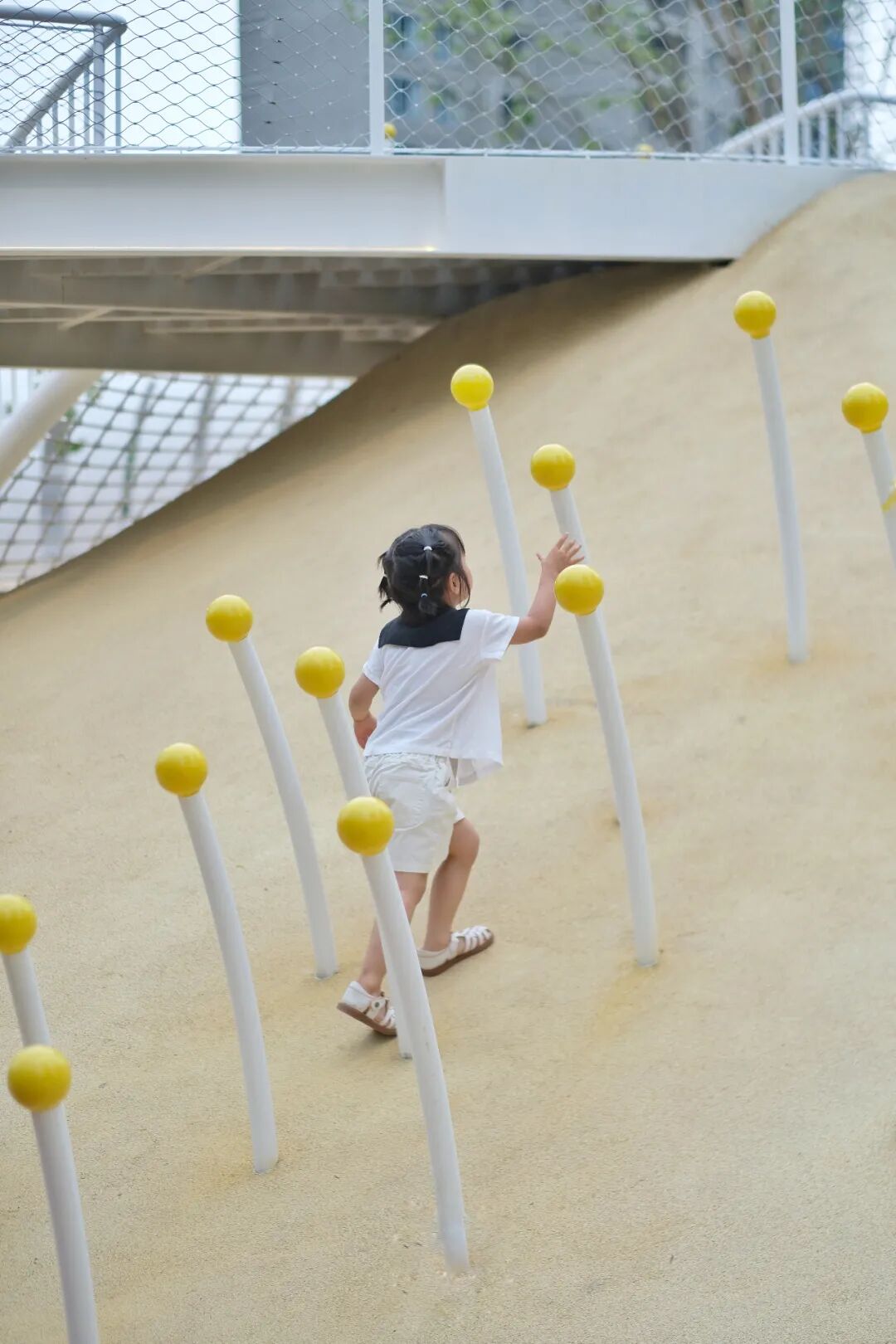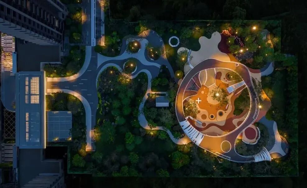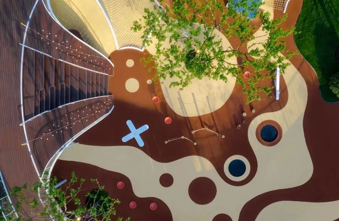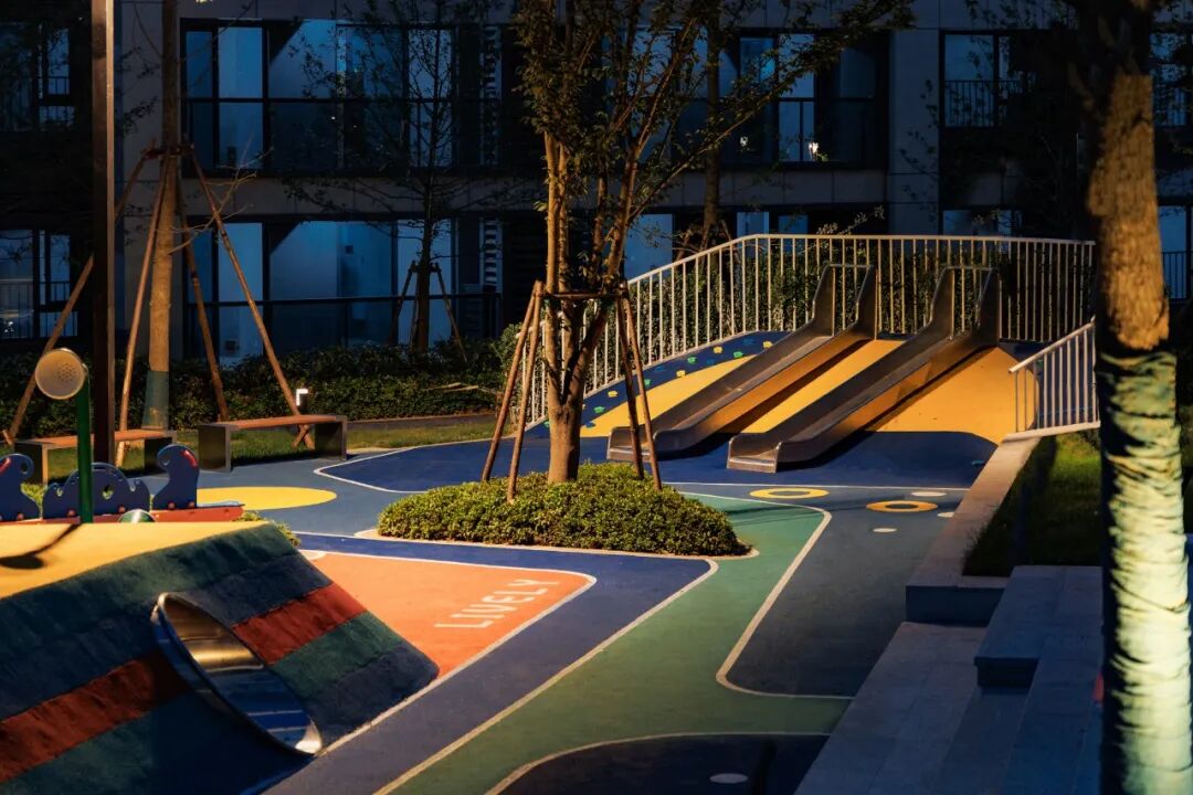 在园区西北侧的密林掩映之下,是园区的活力运动场,小型足球、篮球、乒乓球等球类运动在这里可以通通可以实现,与此同时这里还是园区艺术跑道的终点与起点。