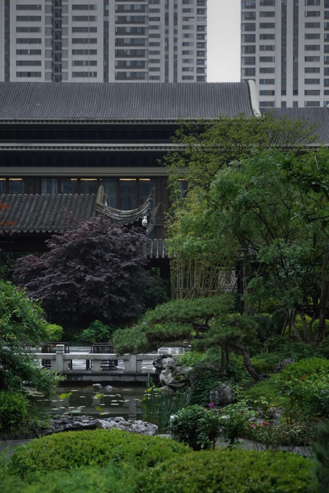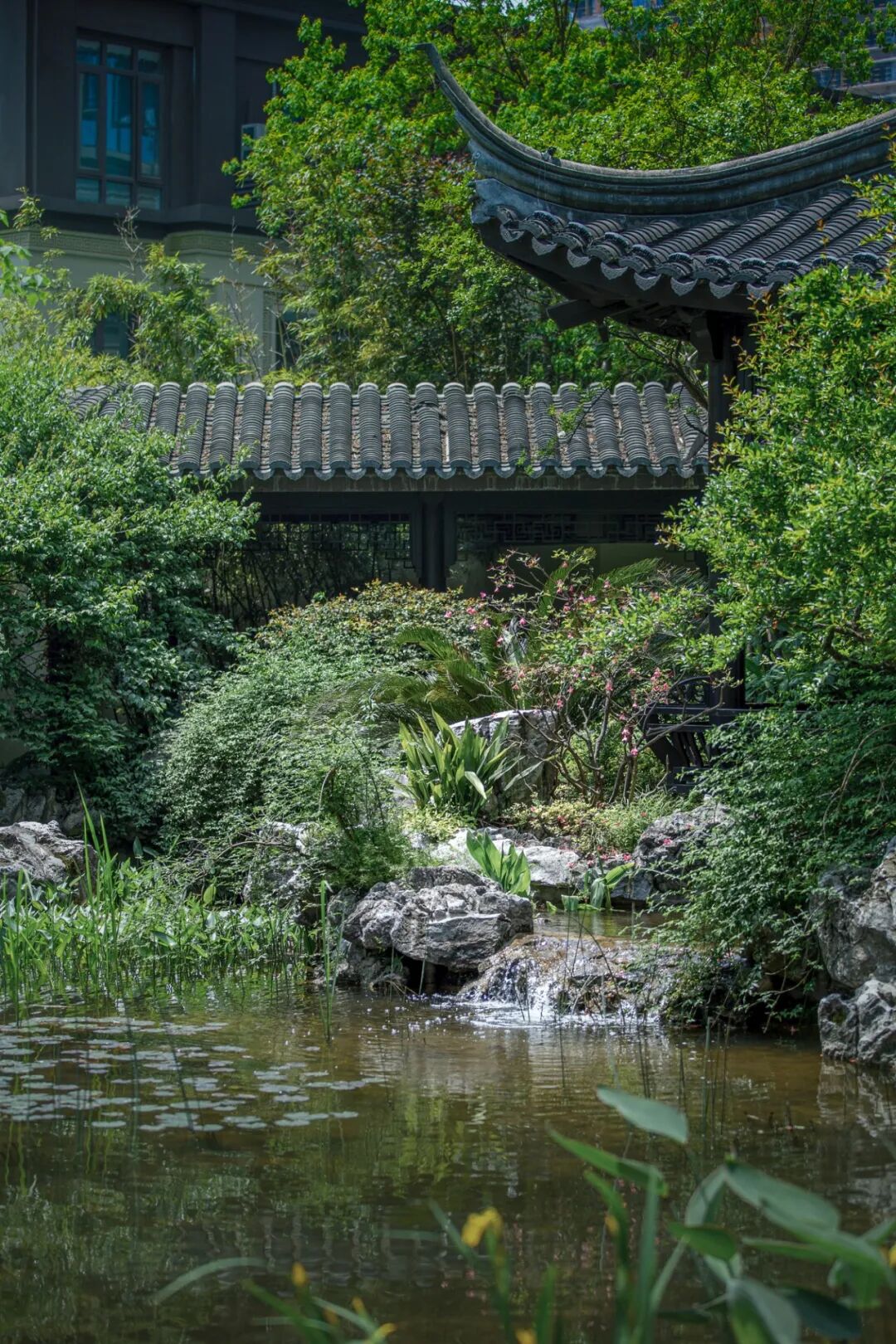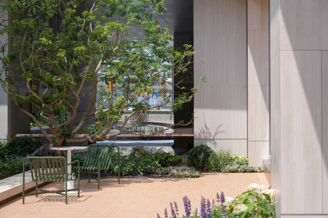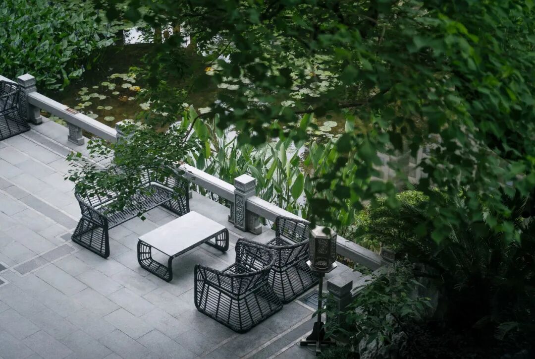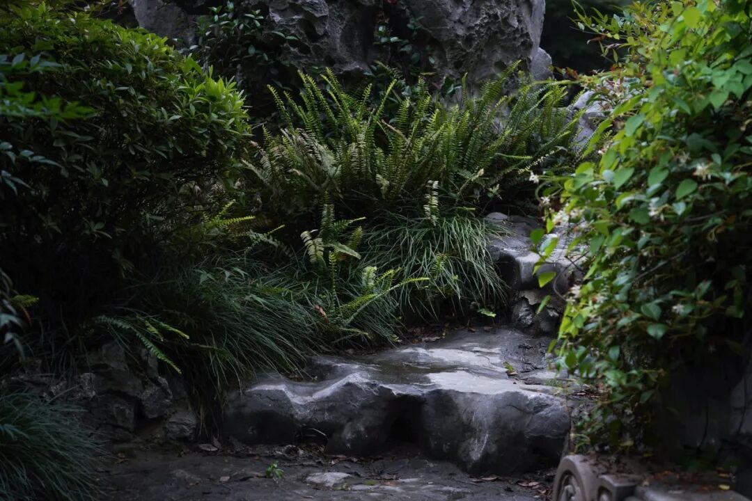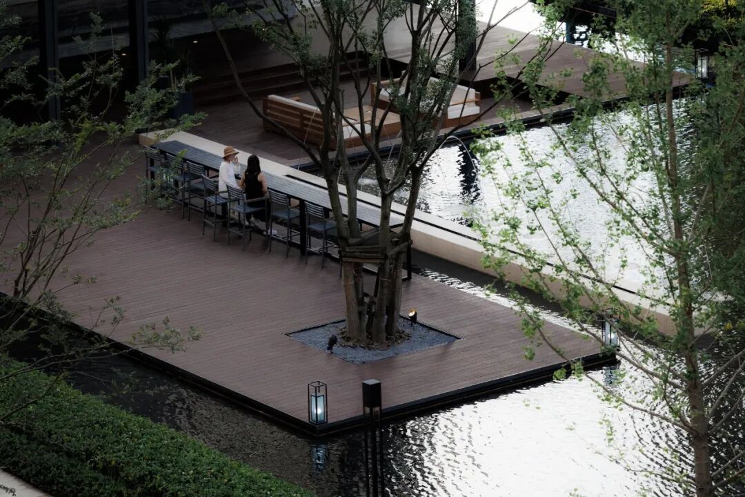 宁谧的镜池与汩汩的涌泉相映成趣,动静之间丰富了视觉。水、石、绿的有机结合,让“烟雨江森”的理念在此得到精致的呈现。闲适怡然之中,人们从城市的喧哗中抽离,沉浸在缓慢宁静的时光里。