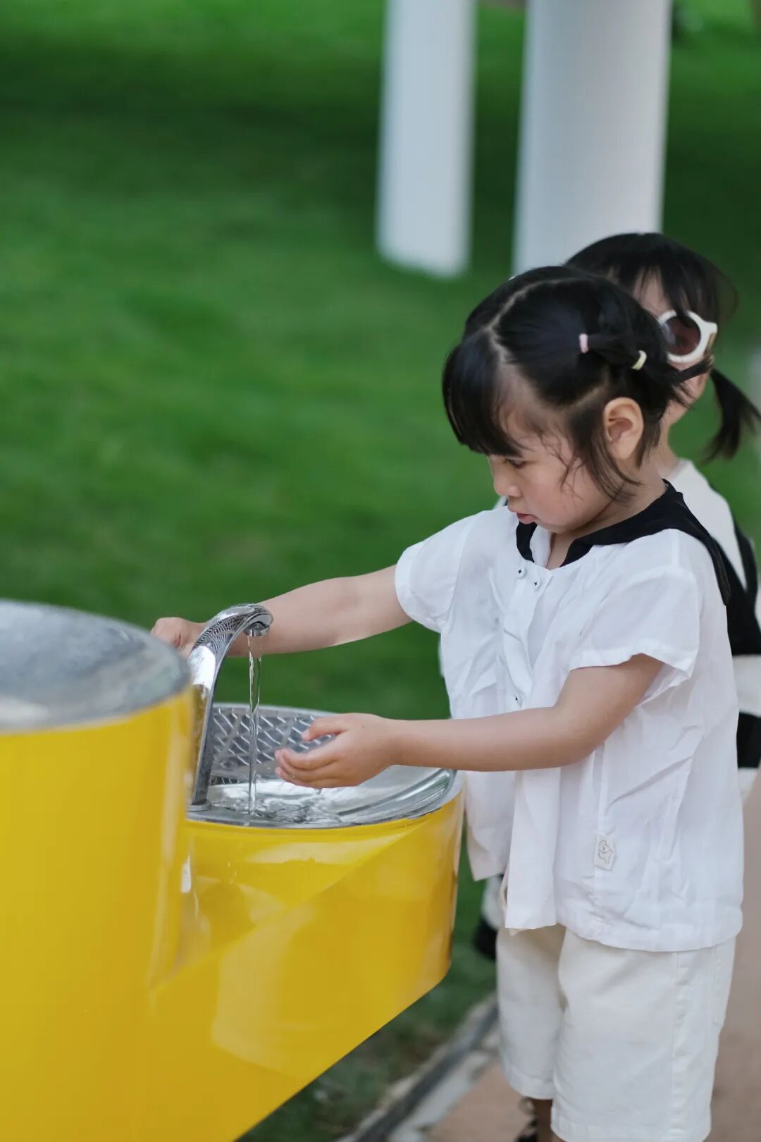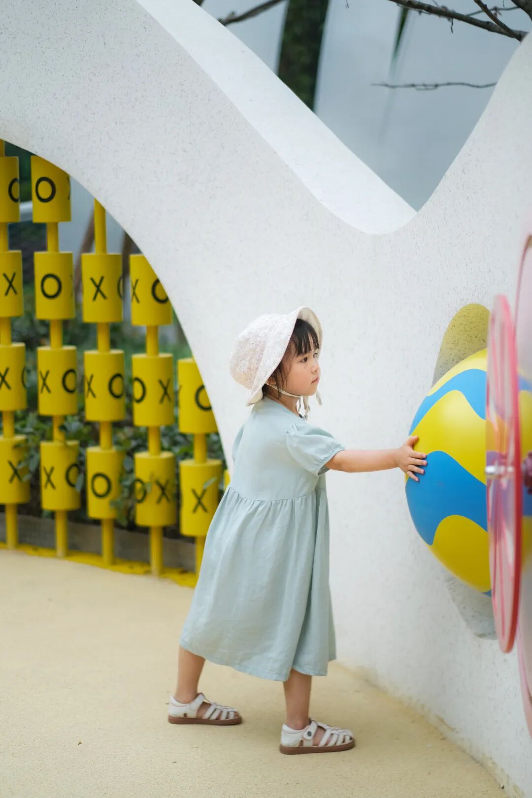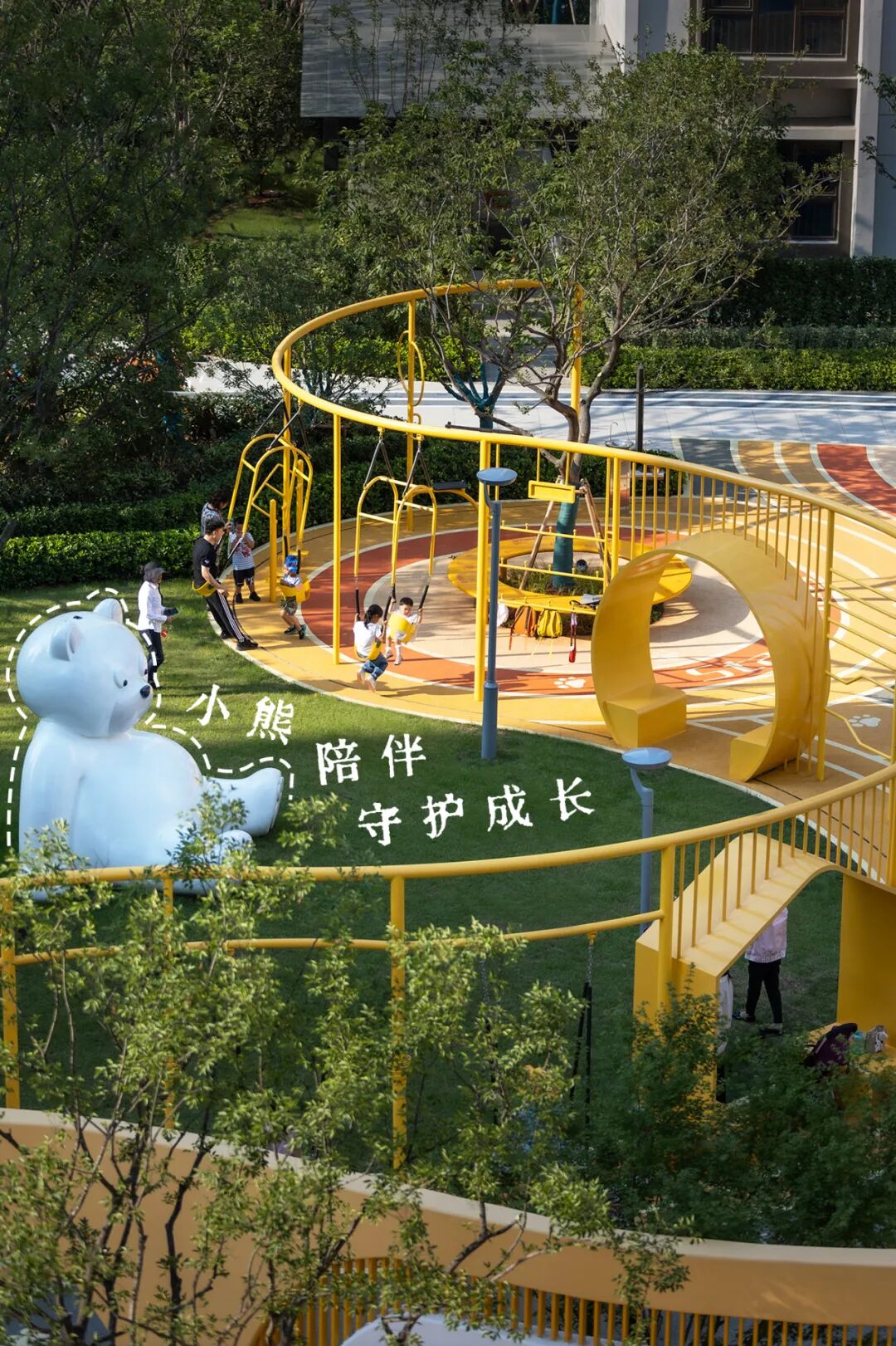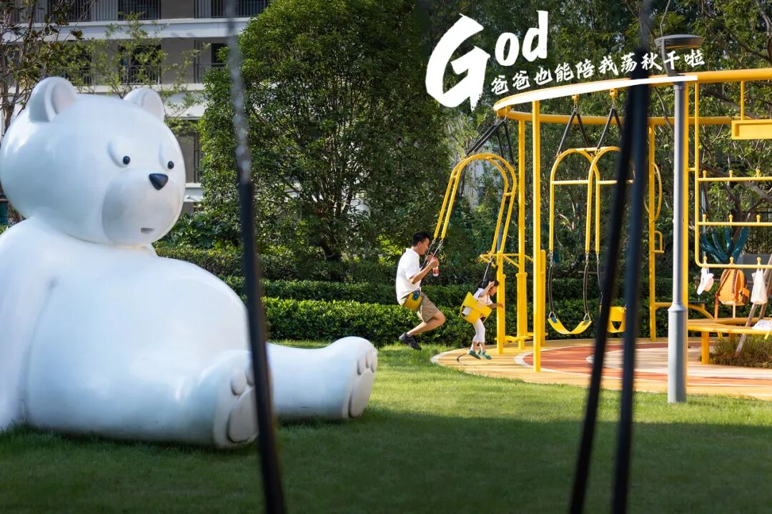 白色的熊爸爸、明亮的活动场地;
