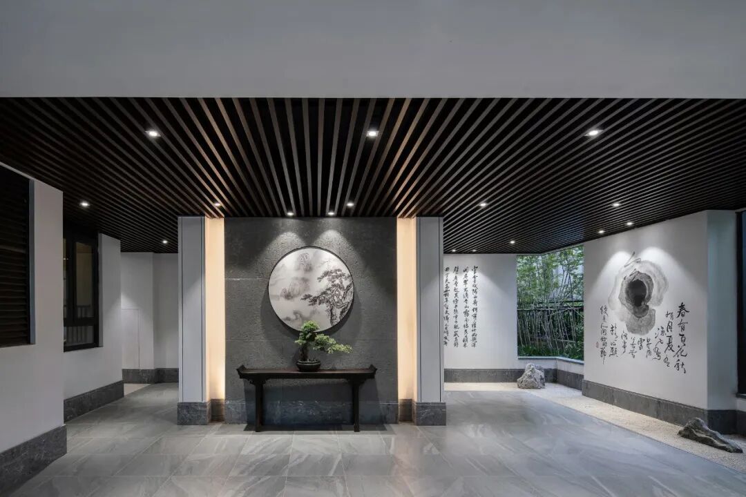 入口空间是仪式感的开始,呈现艺术气质浓郁的昭示界面,如同一位彬彬有礼的绅士,屹立在此等候大家光临,不经意间将来访者带入一处自然的艺术体验之地。