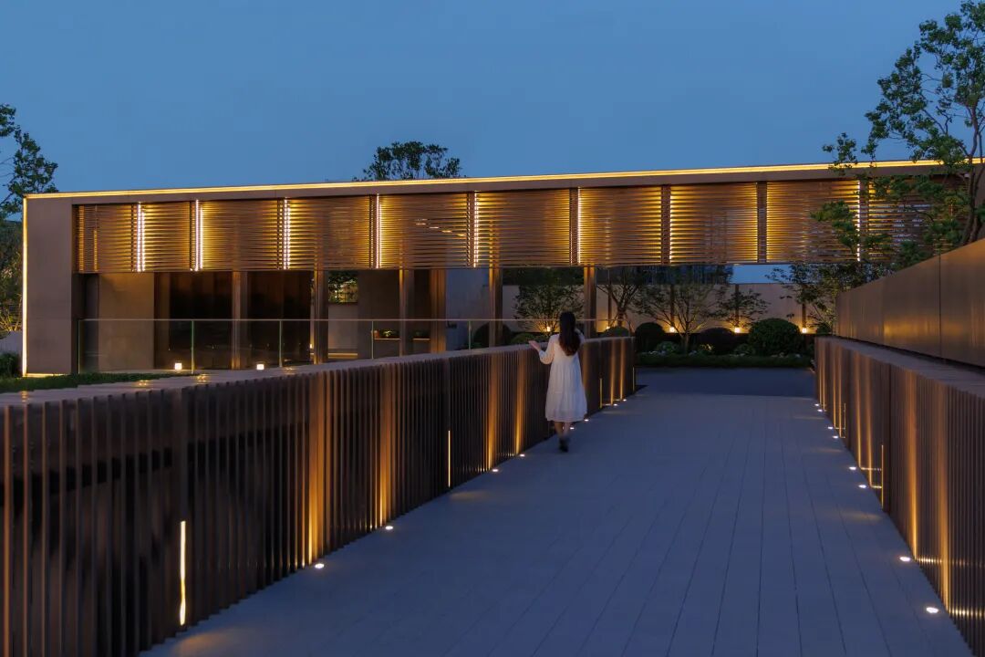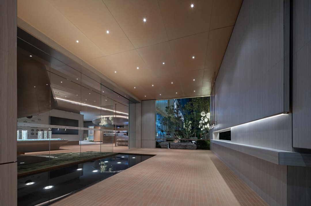 通过空间的围合与限定,使室外环境产生出接近室内化的精致细节,着力打造各空间细节品质,使其具有室内化的舒适感受,充分突出极致场景感,尽显空间品质。从外部环境界面到展示区入口营造,再到内部空间感受,整体空间都需要呈现出系列化的价值品质调性。从外向的入口门户直至园区中的一组灯具,都不应当仅是脱离功能性的纯粹形式表达,而是要让人感受到实在的舒适。由表及里的尊贵因而得以彰显。