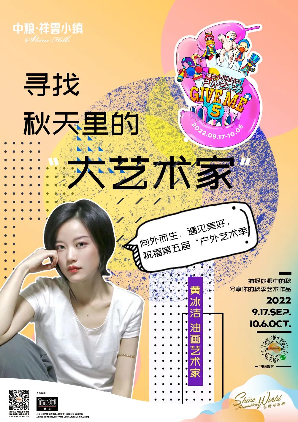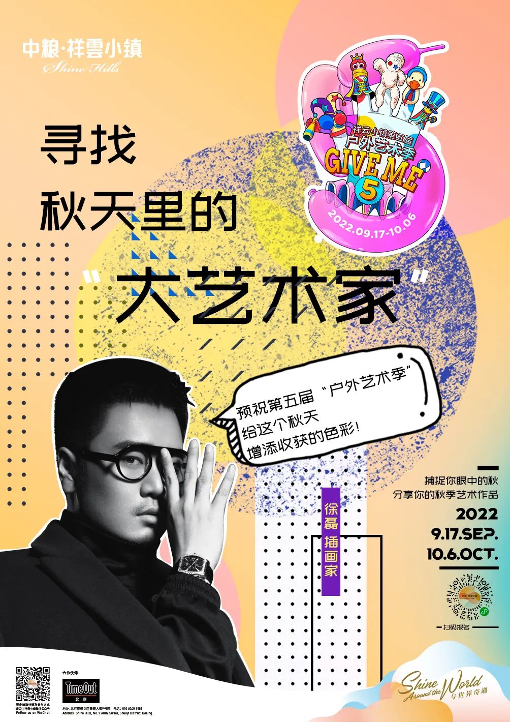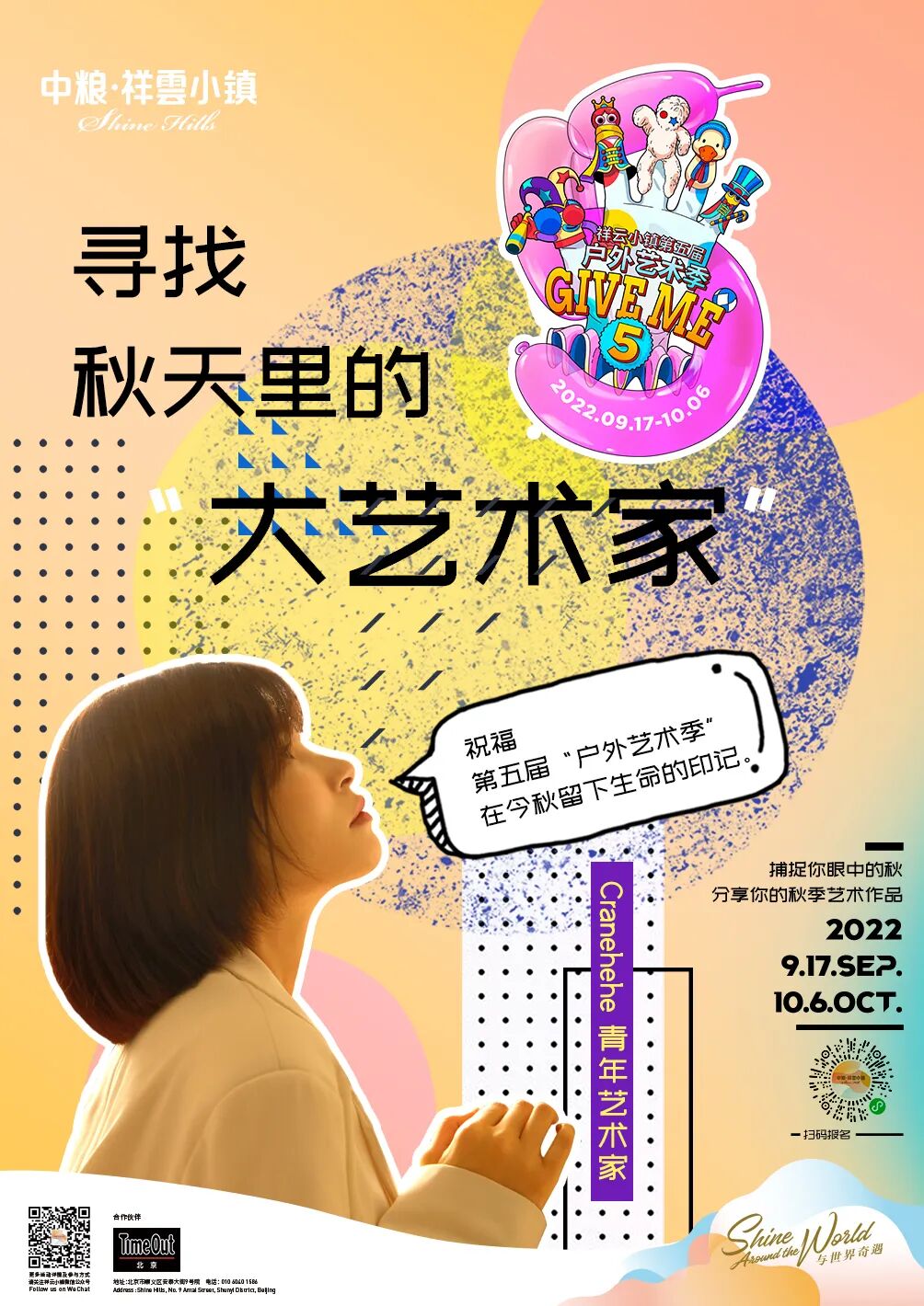 户外艺术季5.0「Give me five」诚邀各位“大艺术家”将捕捉到的秋の艺术传送给小镇。让我们将秋日的创作灵感分享给这个季节里美好的人们!