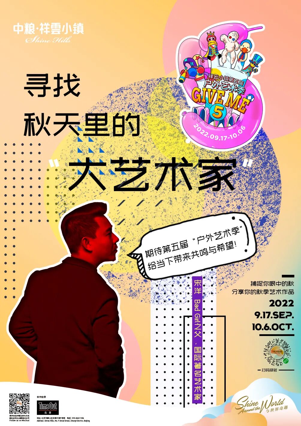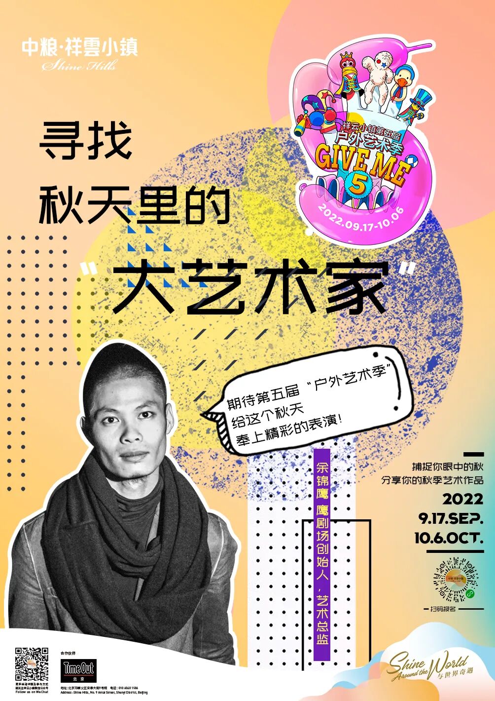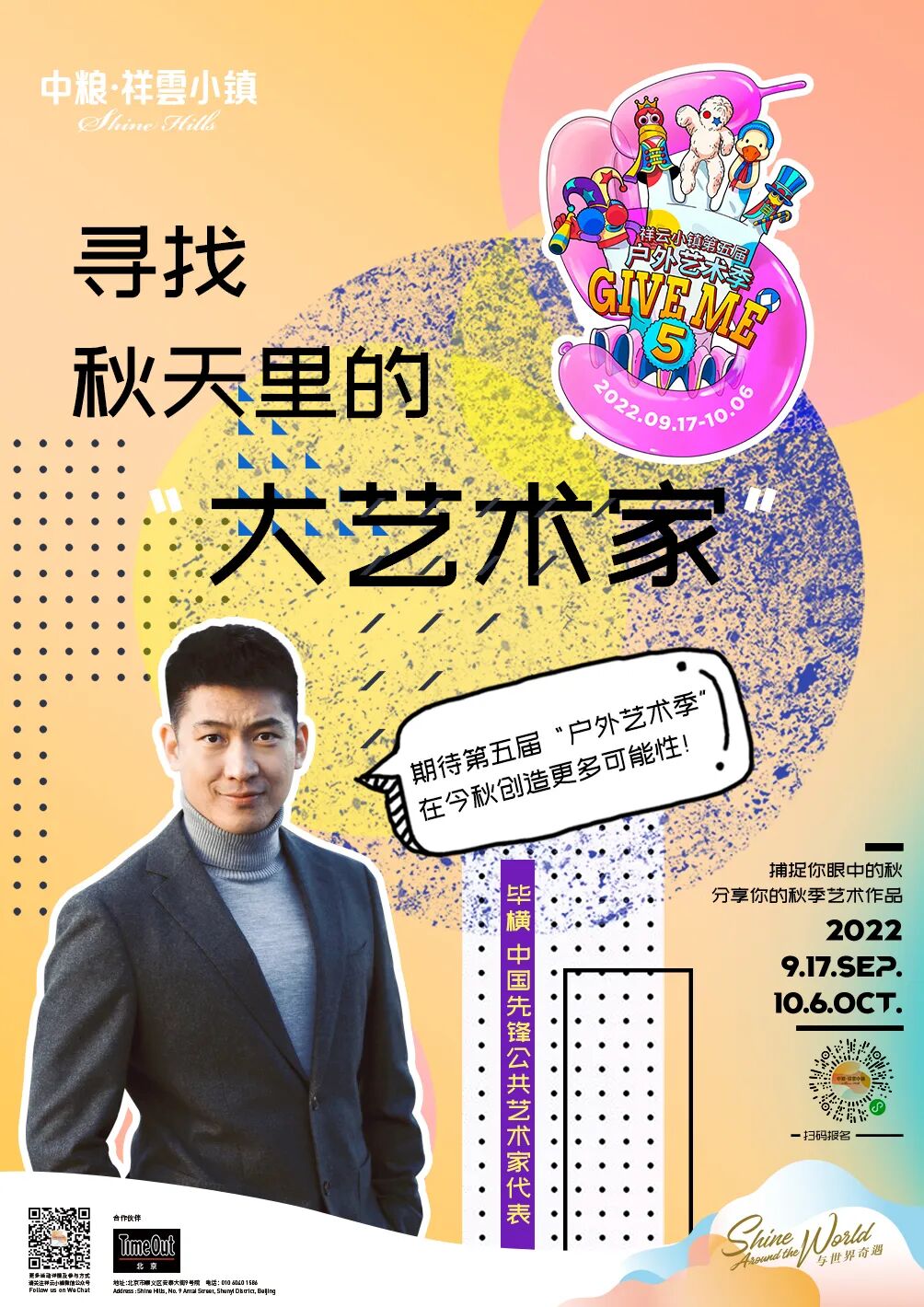 户外艺术季5.0「Give me five」诚邀各位“大艺术家”将捕捉到的秋の艺术传送给小镇。让我们将秋日的创作灵感分享给这个季节里美好的人们!