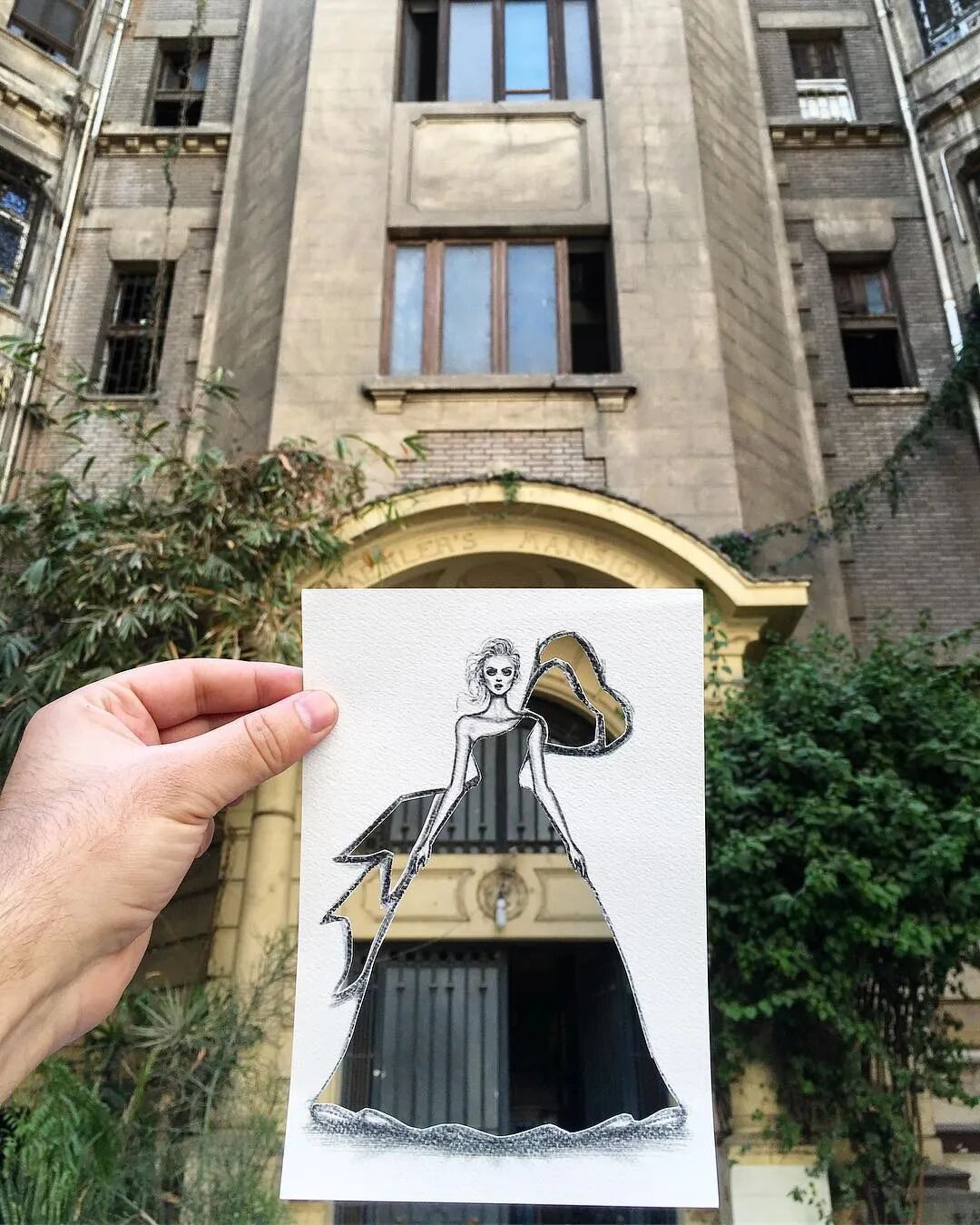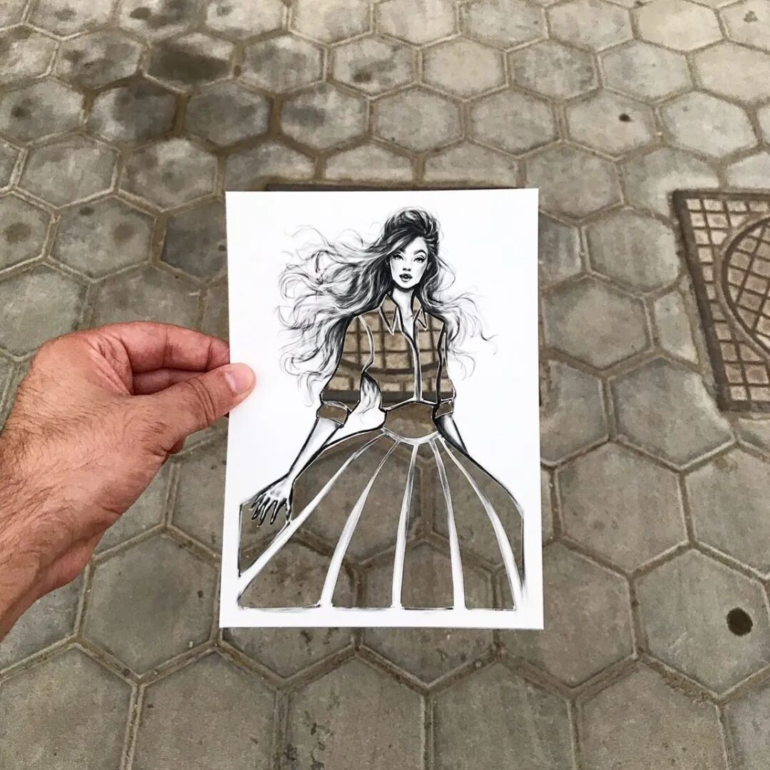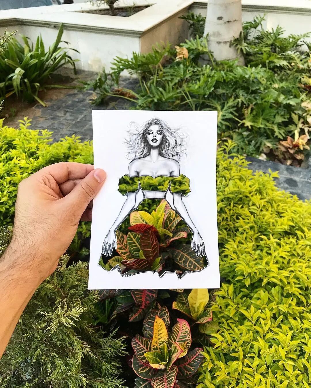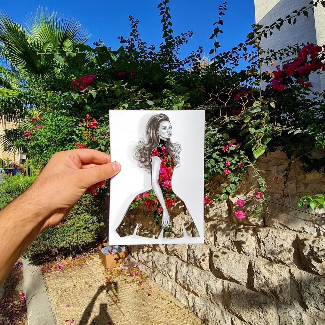 从城市景观到夕阳晚霞,从高速公路到盛开的树木,每一个场景都是纸面涂鸦与现实的面料相结合。沙梅赫·布卢维最新的环境换装插画吸引了很多人的关注,不得不说,这位艺术家融合了建筑师和插画师的才华,在几幅普通的城市景观前,运用镂空插画,创造出了让人意想不到的神奇画面。