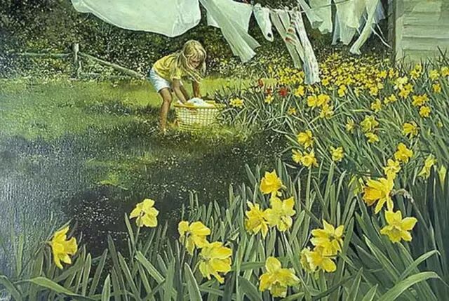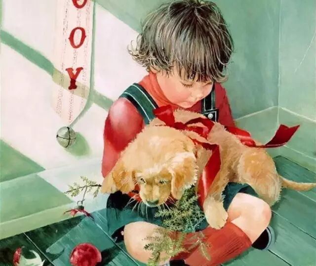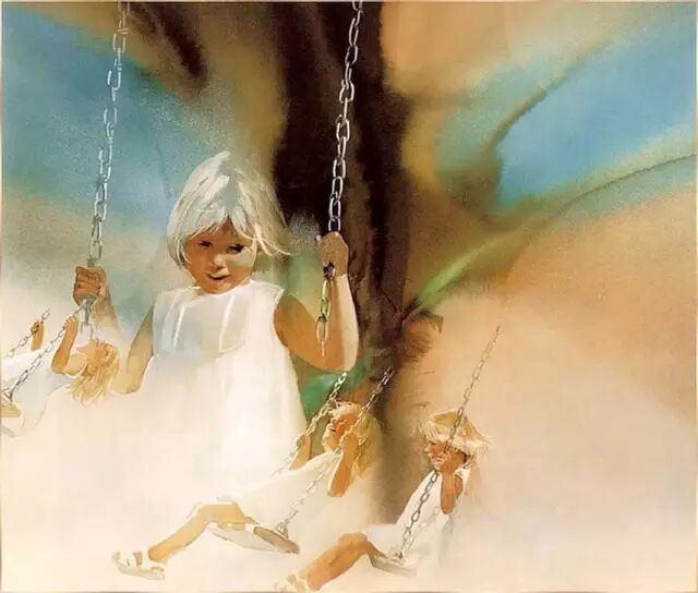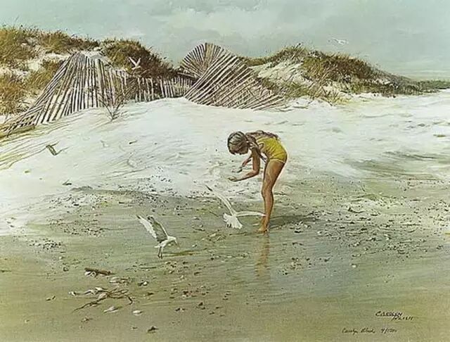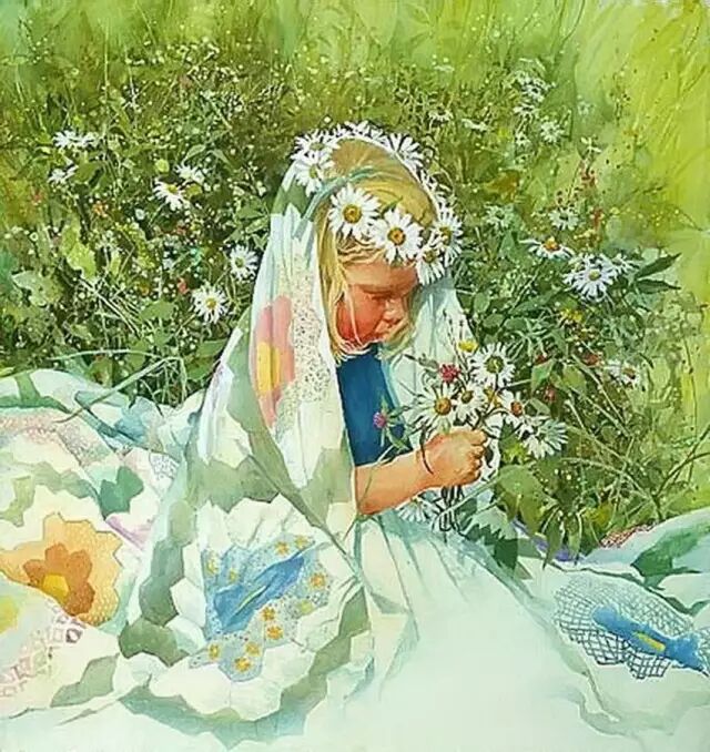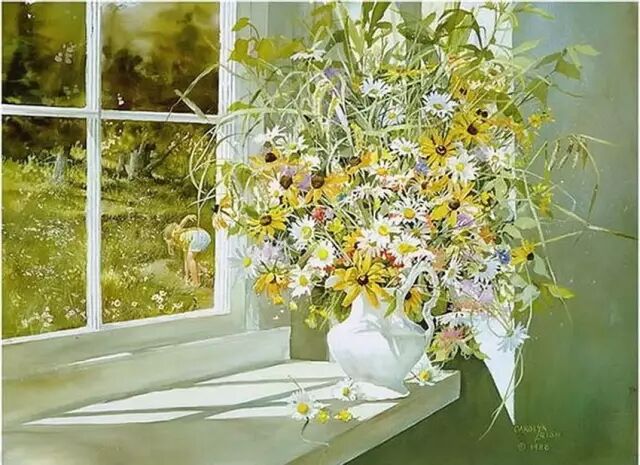 Carolyn Blish的水彩画多以童年、鲜花、海洋为背景,擅长利用水彩的明净、清亮,烘托出最纯粹温馨的画面。她的笔下呈现出的一段段美好时光,纯粹得不含一丝杂质,一时间,似乎让人忘却了这个世界还有丑陋无奈的一面。