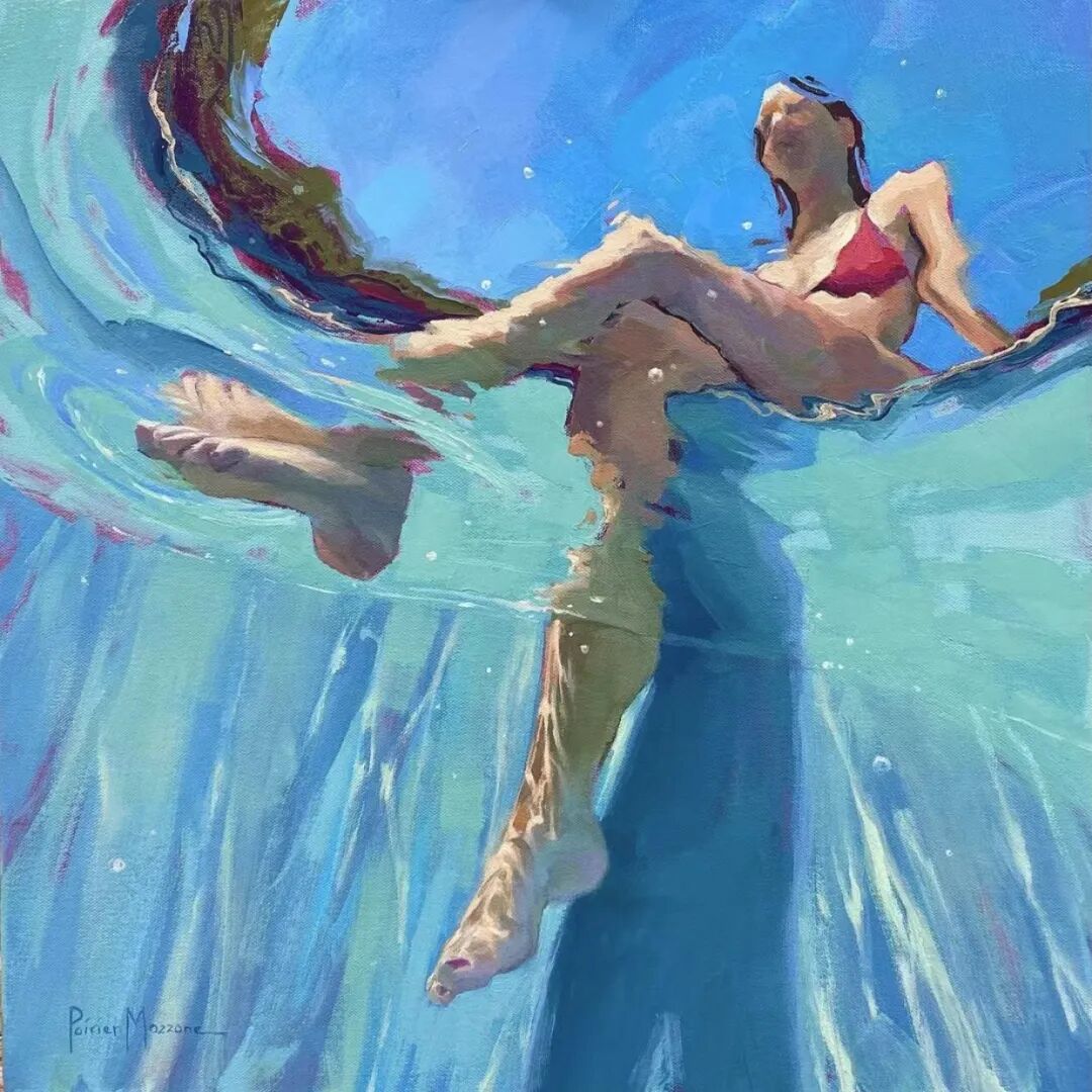 Michele Poirier Mozzone 毕业于伊曼纽尔学院并获得了美术学士学位,毕业后从事水彩工作,后发现油画材料更适合于自己的创作。她因《断裂的光》系列画作获得奖项和国际关注,该系列描绘了人物沉浸在水和阳光的影响下。
