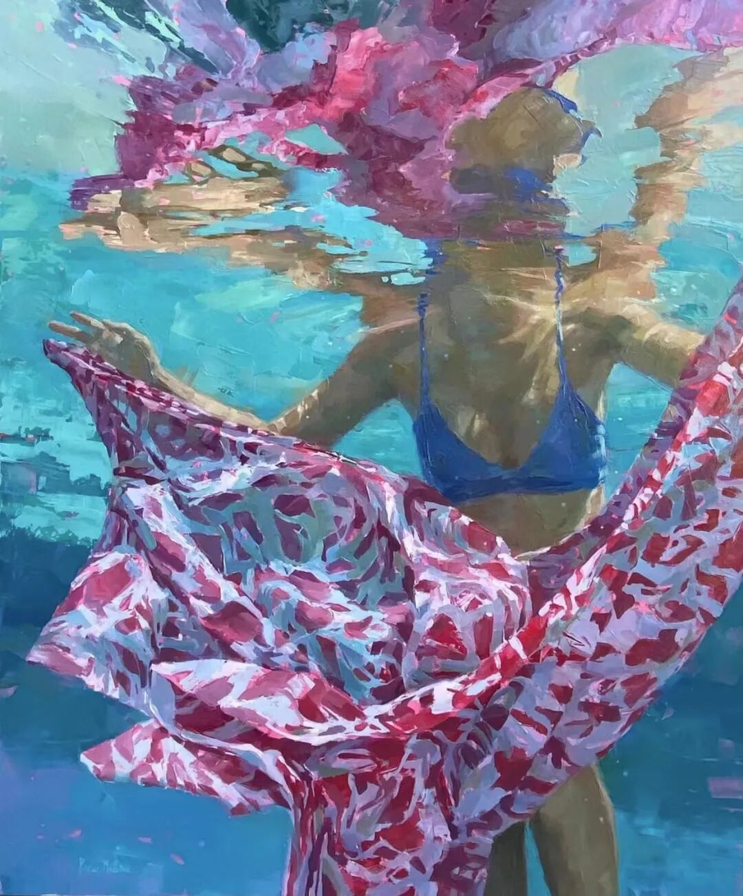 她说:“我是一个被水和阳光对人物的影响所吸引的画家。人形永远让我着迷。通过这源源不断的灵感,我不仅能够提高我的艺术技巧,还能够探索普遍和自我反思的主题。”