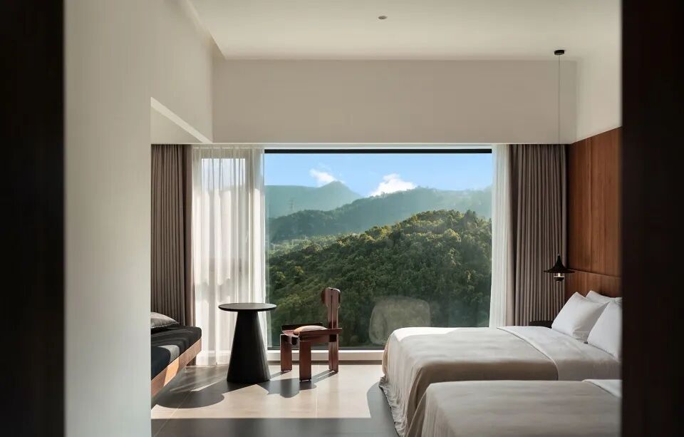 当诗意浪漫的设计表达与山谷秘野发生碰撞,建筑因人而美,感受因环境而丰富,本设计围绕人与自然,给予旅人最温情的回应。设计考虑以更简洁清浅的当代语言为空间营造松弛的感受,家具的选型及色彩的考量平衡了室内外的关系,空间不仅让人慢下来,而是带着思考驻留。