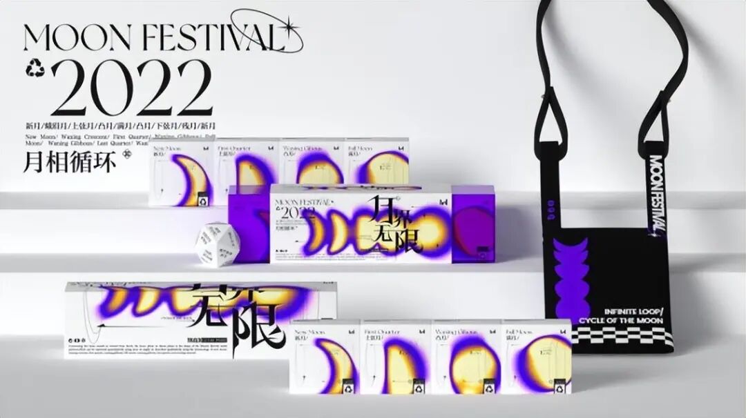 抖音的高颜值礼盒以“月界无限”为主题,在盒面展现圆月逐渐变化的过程,结合现代先锋美学打造精致中秋礼。