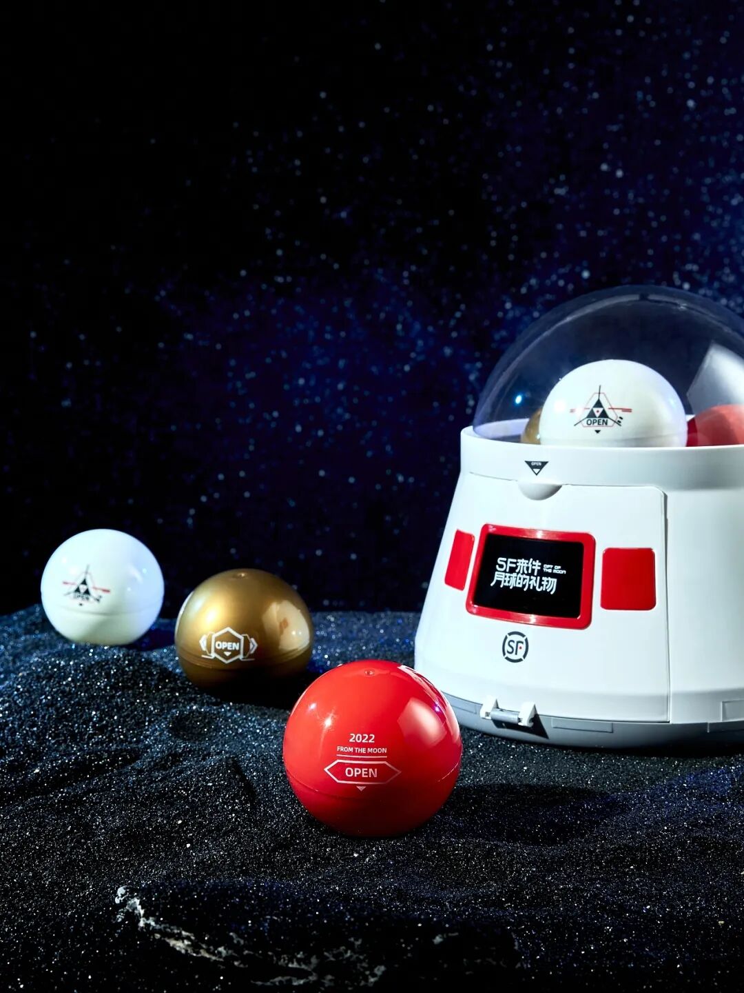 顺丰给你寄件了!这是一份来自月球的礼物,礼盒由专属的月球设备打造而成,通过扭动相关装置,便可随机抽取一颗小月球,打开则是以顺丰元素设计的趣味月饼,满满的科技感!