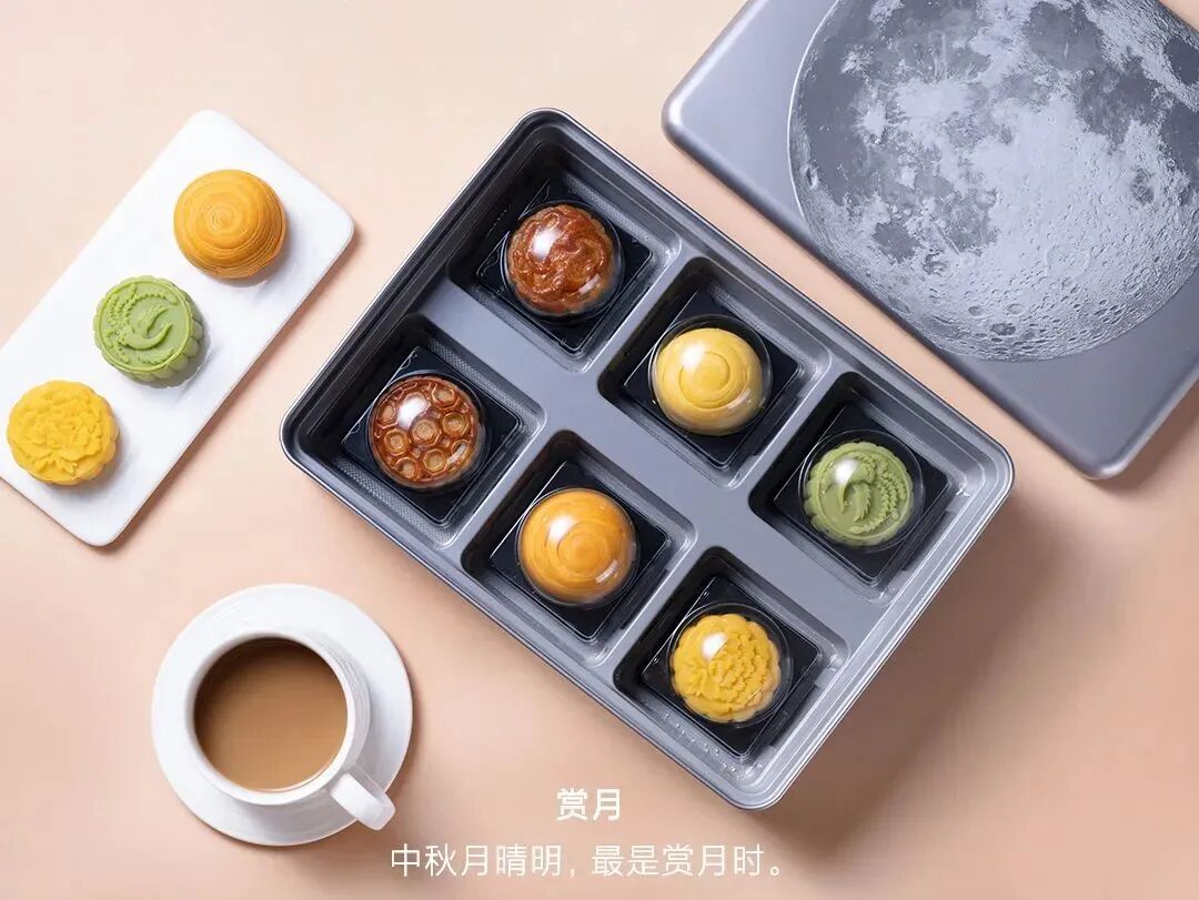 2022小米中秋礼盒开启“追月”模式,打开银灰色调的月球铁盒,可看见整齐摆放的六颗小卫星月饼,尽享各种风味。此外,礼盒还配备有趣味飞盘,吃饱喝足之余,还能燃烧卡路里!