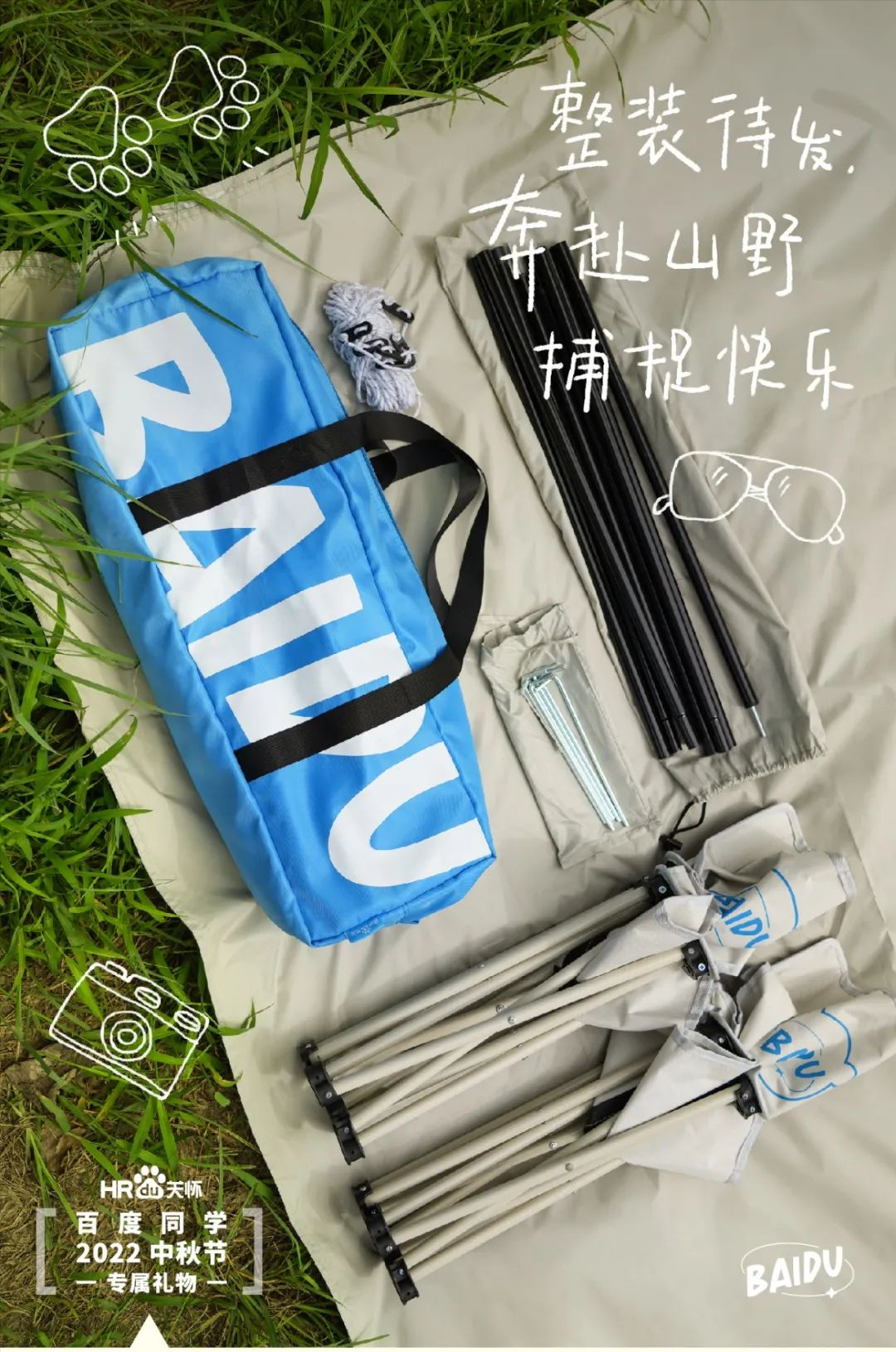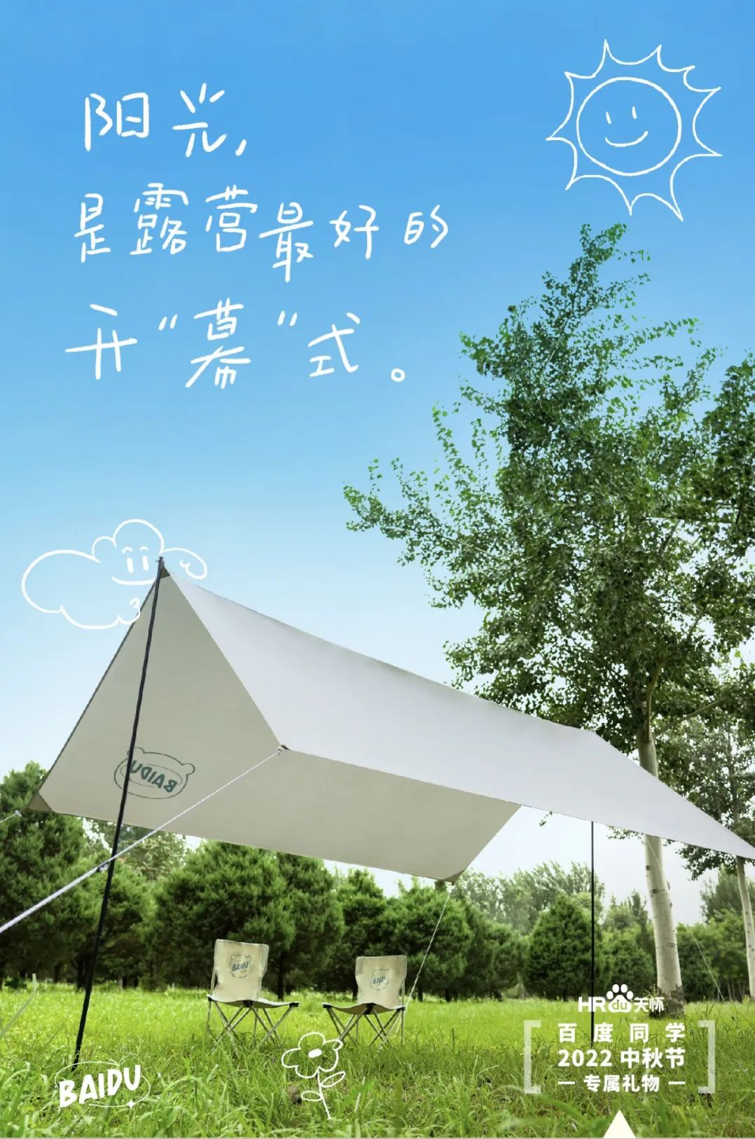 百度中秋礼,直接准备一整套露营装备--天幕、折叠靠背椅、野餐垫,以及必不可少的月饼,狠狠地懂年轻人了!