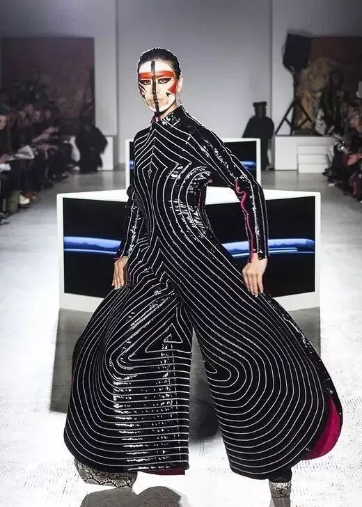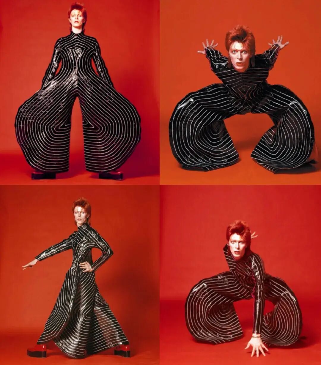 每逢提及山本宽斋的设计,就不得不谈到另一位风云人物——David Bowie(大卫·鲍威)。这位来自英国的超级摇滚巨星于1971年在山本宽斋的展上一眼相中了极具舞台戏剧化风格的服饰。两位世界级的顶尖人物的合作也创造了许多奇迹,如Ziggy Stardust时期的经典造型,极具艺术性的夸张舞台服饰。