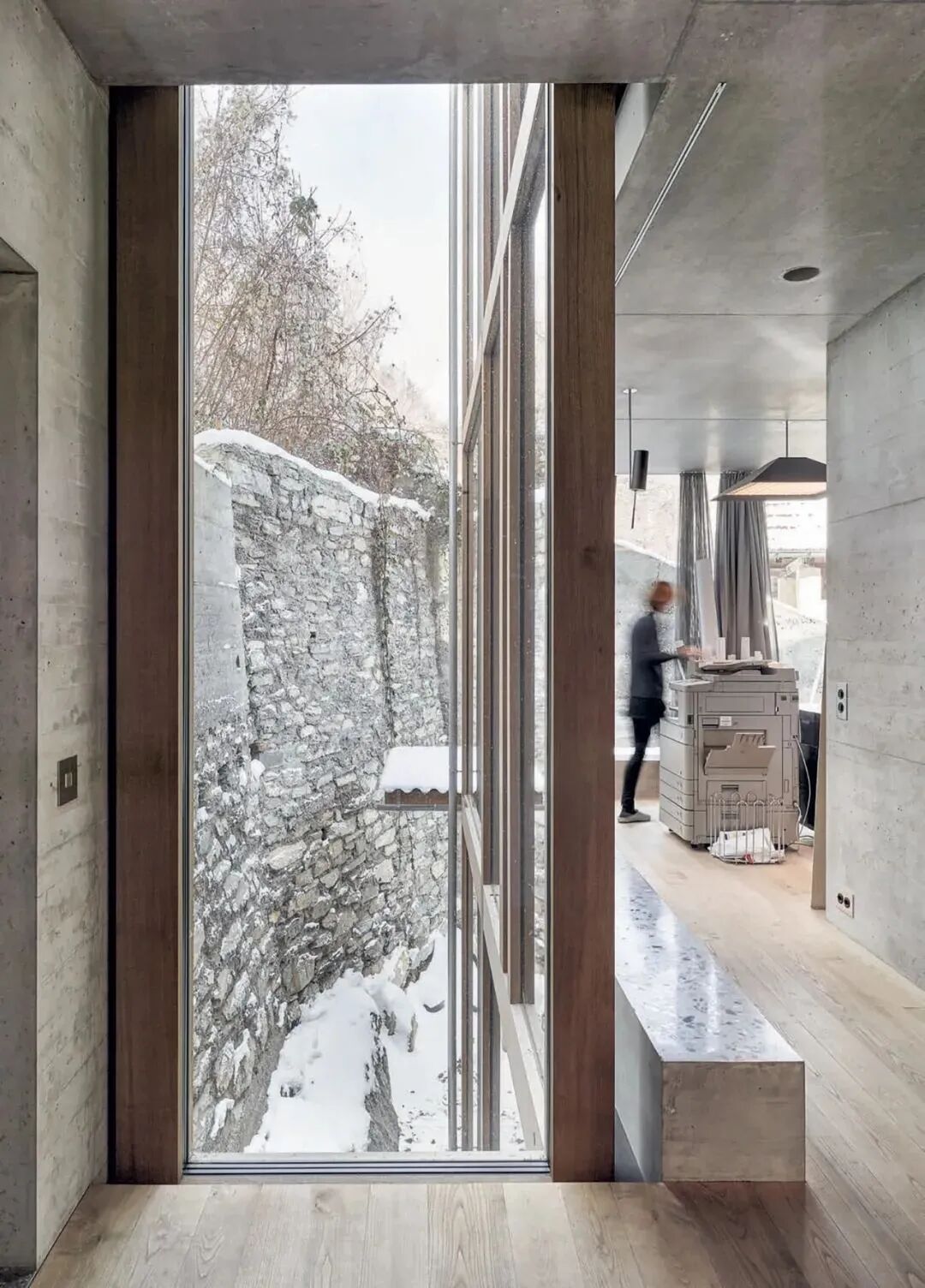 如果来自加利福尼亚、首尔或者米兰的建筑商来这里,请卒姆托解释为他们设计的博物馆或者酒庄的设计状态,他们会对玻璃后面粗石料的挡土墙,就像他们对这座建筑开敞的空间一样,感到印象深刻。