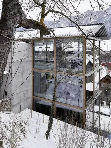 在瑞士哈尔登施泰因的第三座工作室是一间玻璃建筑。它展现出这位74岁建筑师的高超技艺和自信,并强化了卒姆托的的标签。