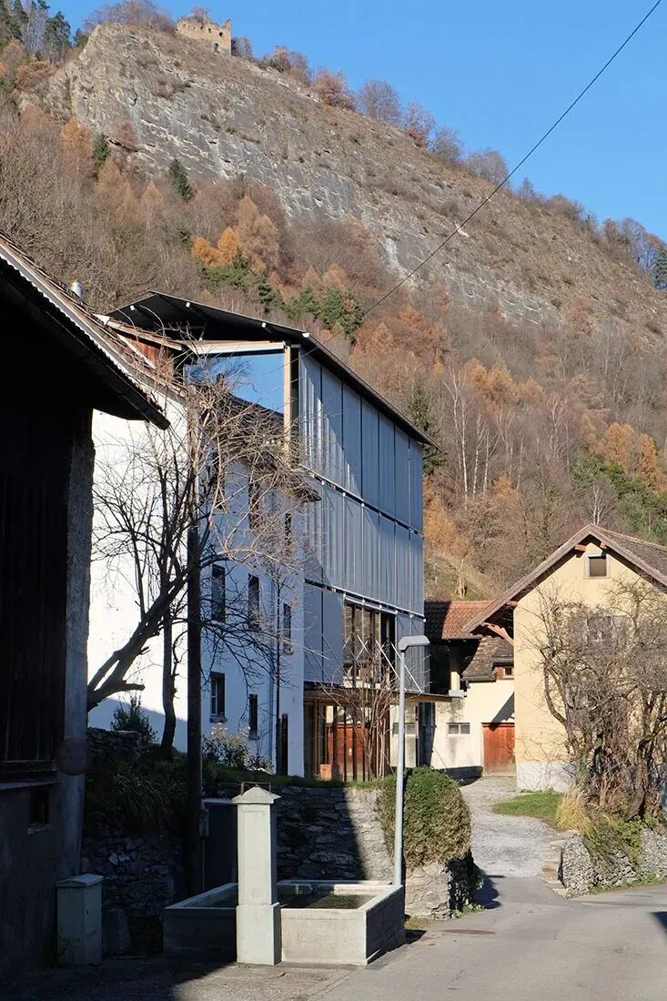 在这座曾经的农村中,这是最后一块被设计的“卒姆托家园”。它将世界带入这个不到一千人的小社区。新的房子俯瞰整个哈尔登施泰因,就像好莱坞上的别墅俯瞰洛杉矶一样。它组织了景观,就像它组织自身功能一样。它不仅是一个美妙的工作场所,也是整体景观的一部分。