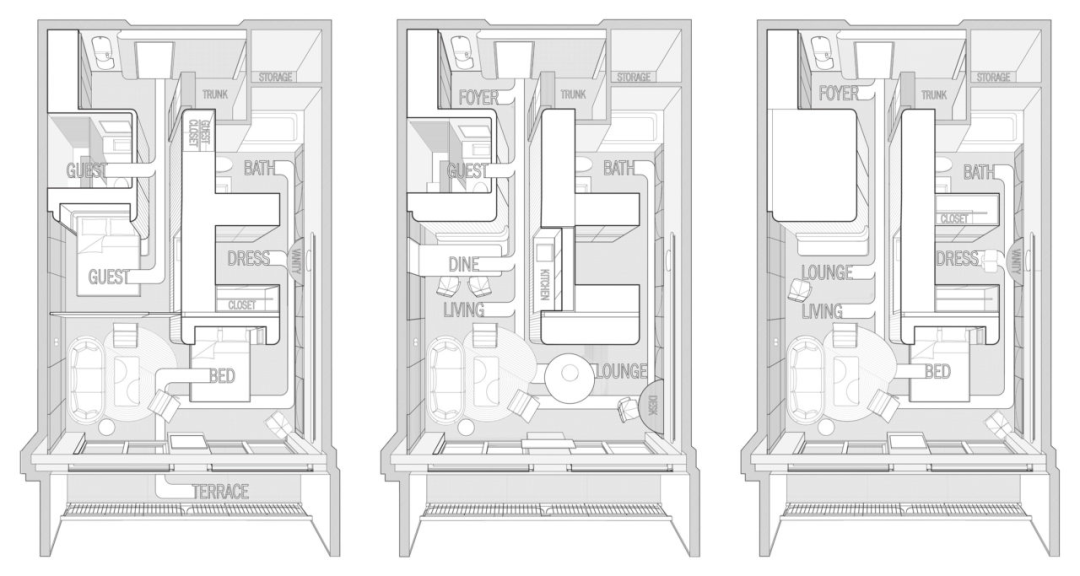 就像他 1952 年建成的著名的集合住宅《团结》(Unitéd'Habitation)所表达的精巧住宅单元一样 ▽