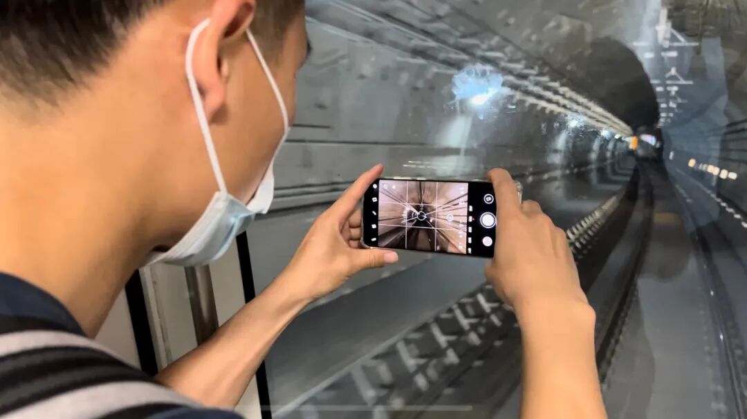 这类照片可以在地铁隧道中拍摄,在地铁车厢头或者车尾的地方拍,视野要开阔,不能被车厢遮挡视线,手机在拍的时候需要紧贴着车厢玻璃,避免拍到玻璃反光,不需要用三脚架,只要手机紧贴玻璃,拿稳拍摄就好了。