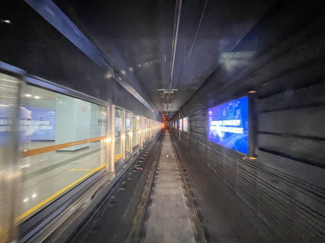 拍摄时需要注意的是要在地铁速度跑起来之后再拍,在灯光颜色比较丰富的路段拍,拍出来色彩更加丰富。