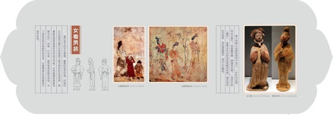 唐代多元的文化背景、富庶的经济环境和开明的文化政策,为唐代女性提供了较为宽松的生活空间,使奢靡的物质追逐在当时成为可能,女性能够经常参加骑马出行、狩猎、打马球、拔河等竞技娱乐活动,为了适应这些比较剧烈的活动,女着男装以及胡服成为流行时尚。
