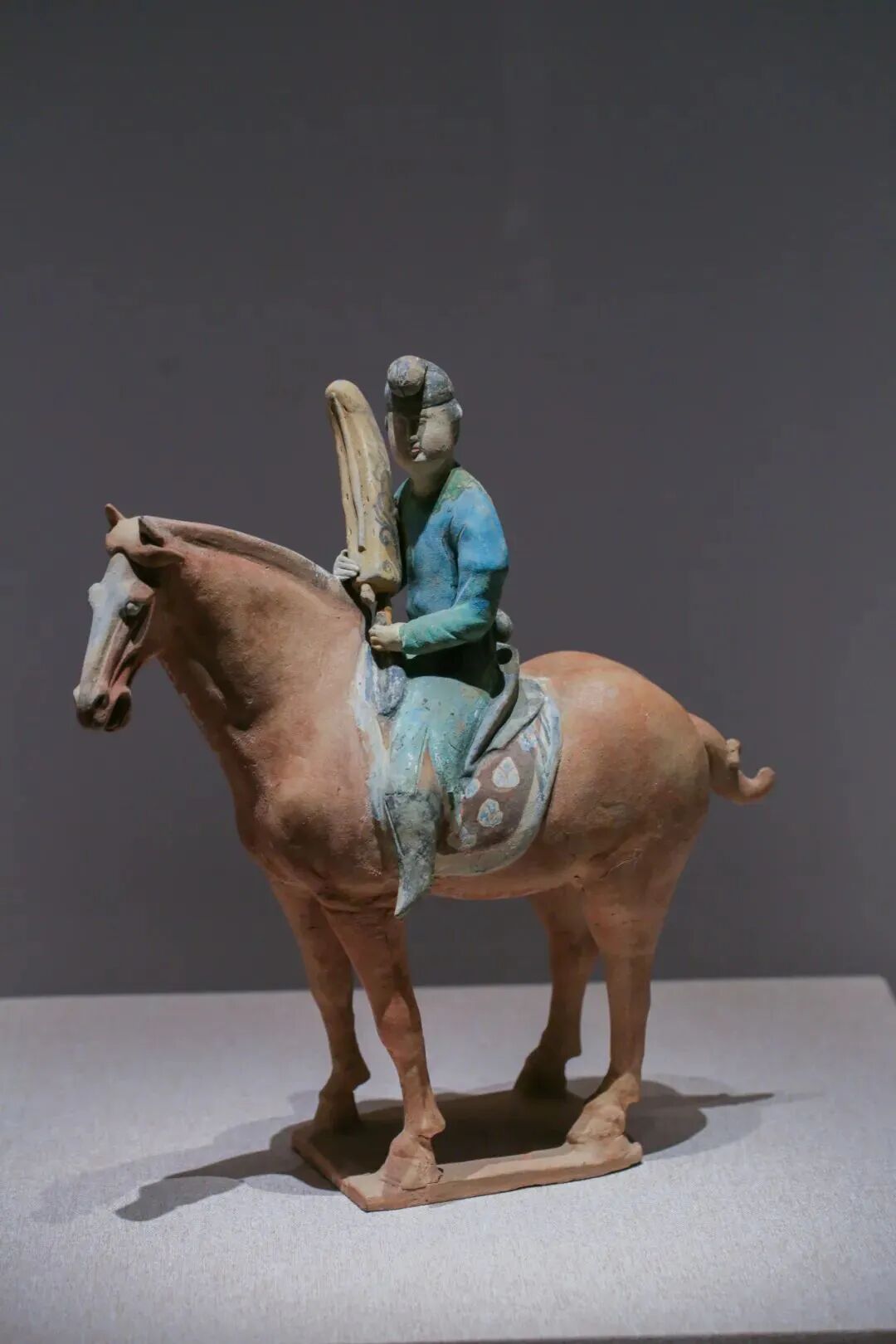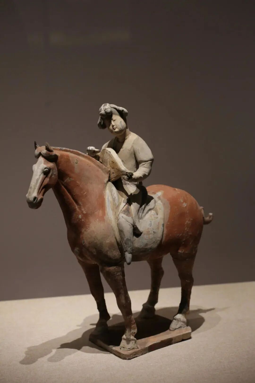 这些精美的文物,包含了盛唐时期社会生活诸多方面的信息,生动地再现了盛唐时期女子骑马出行的风尚以及胡乐盛行的情景,是唐代贵族酒足饭饱之余逐兽山林、射飞苑中的真实写照。通过气势庞大的骑马鼓吹仪仗俑群仿佛使人看到唐代贵族出行时旌旗飘动、笳鼓喧天的盛大场面。