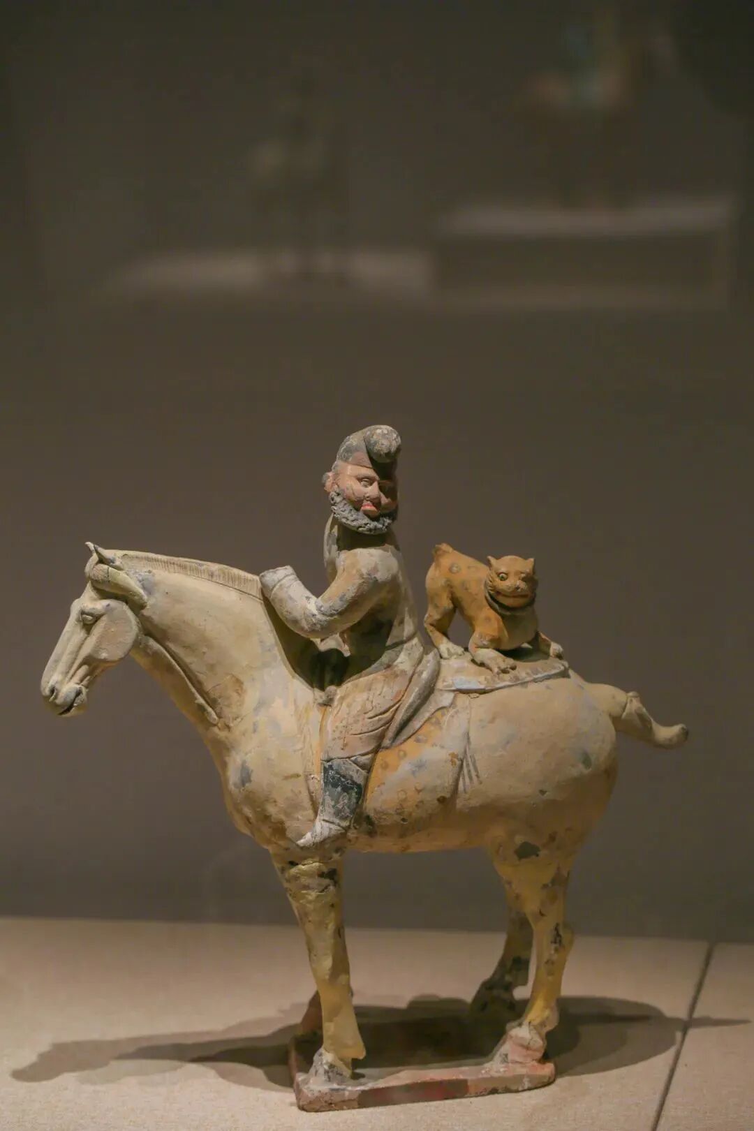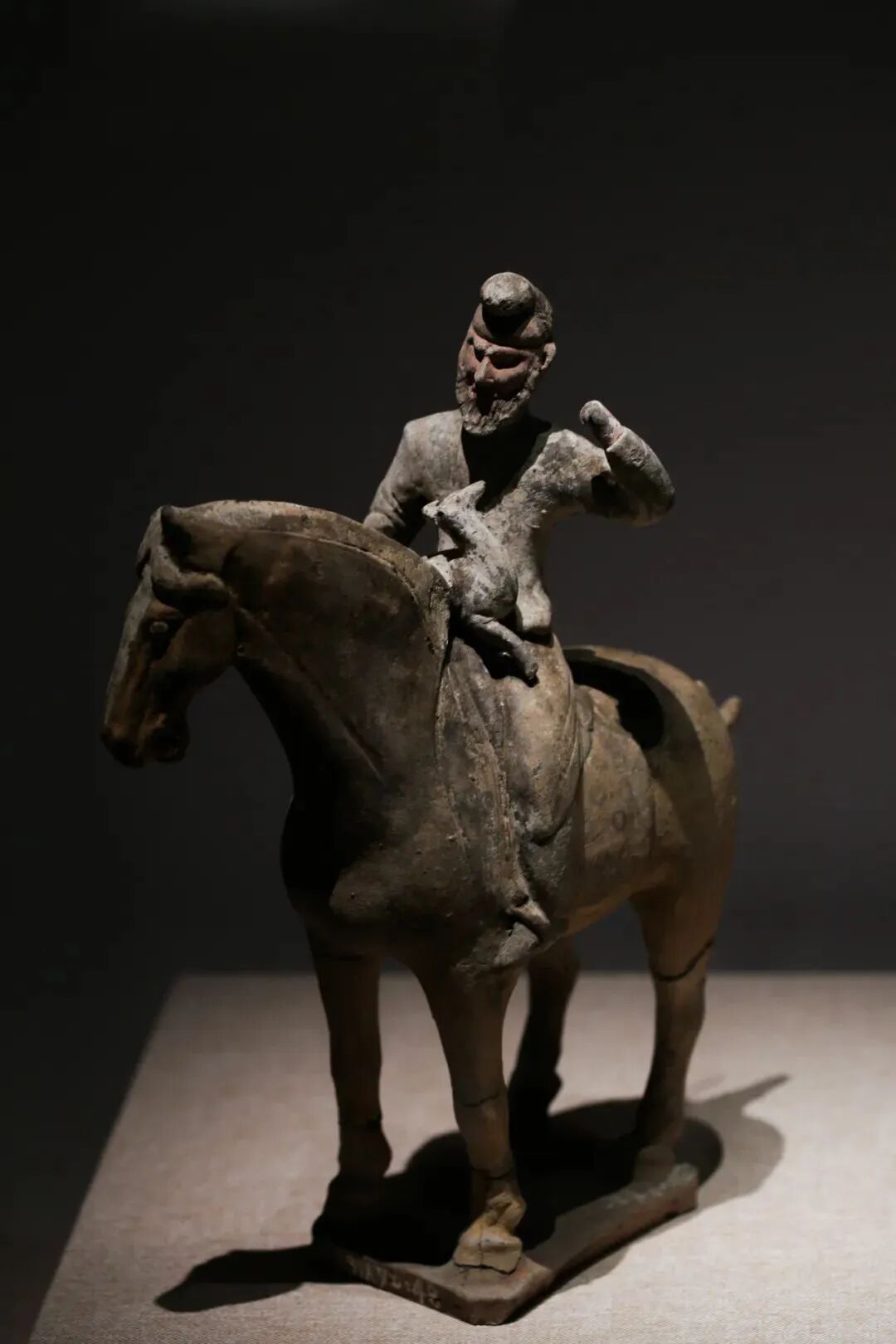 他们或架鹰,或抱犬,或带豹与猞猁,或蓄势出击,或猎鹿而归。西域助猎猛禽、飒爽女猎师和胡人猎师的刻画,以及高超技法还原出的紧张氛围成为这批狩猎俑的一大特色。
