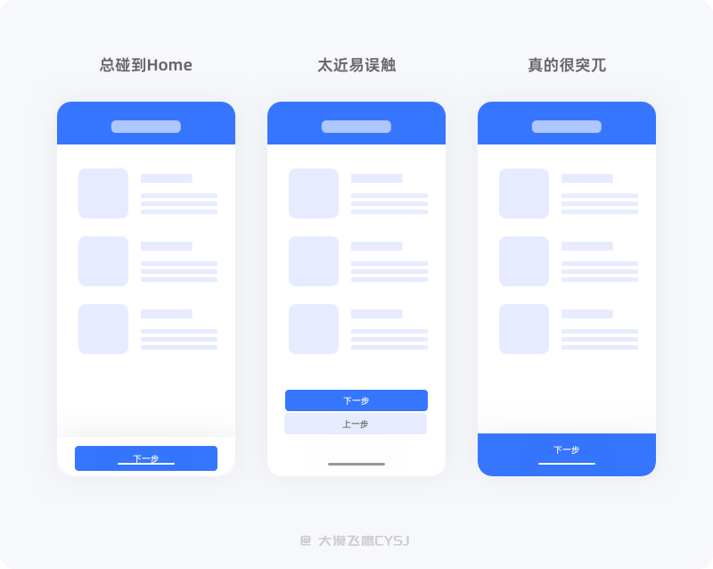 在弹窗中,主按钮是在左?还是在右?这是一个争论不休的问题,那么不争了,在移动端的弹窗设计中,主按钮靠右就行了,不一定绝对正确,但绝对不是错的。根据调查数据显示,单手使用右手操作手机的用户比左手操作手机的用户量高,且用户也有一定的意识,左侧为上一步、右侧为下一步,顶部左侧为返回,右侧为保存或确定。