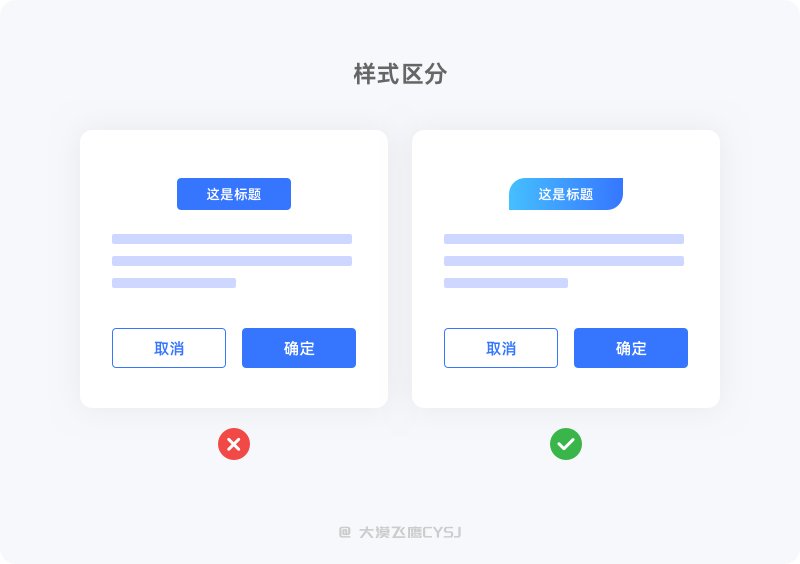 主/次操作按钮要统一样式,用户需操作时,尽可能的减少其思考及选择时间,按钮应该迎合用户固有认知及惯性思维,节省时间成本,提高操作效率。