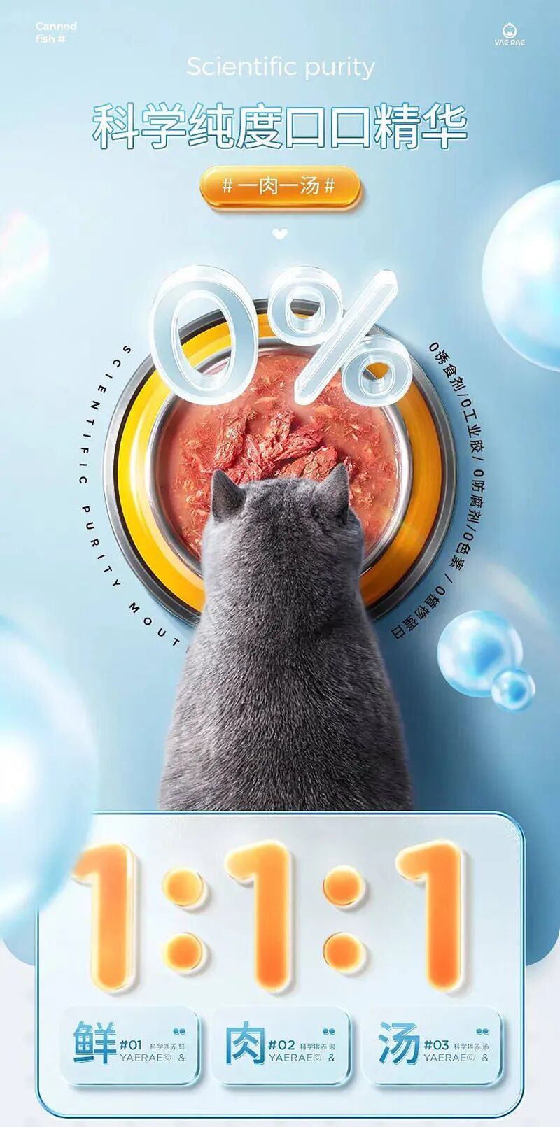 而下面这则猫粮的海报,其文字表现手法则要丰富很多,对比要更强。