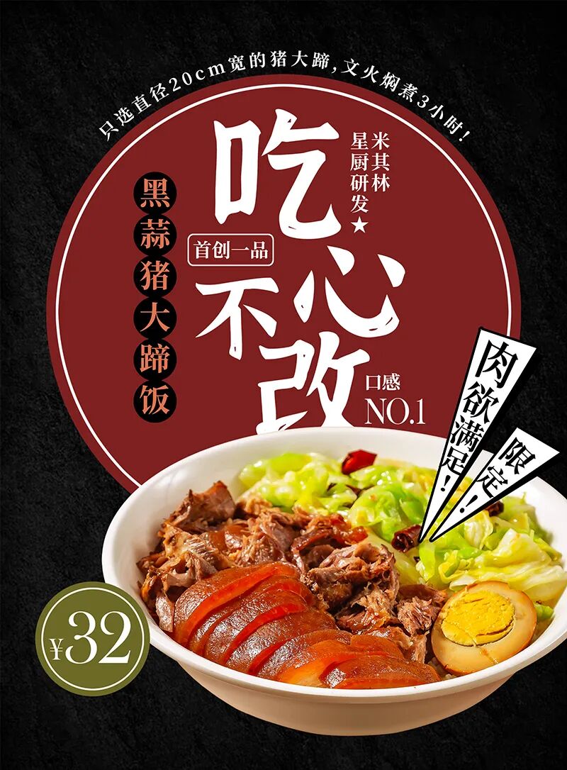 ❷ 文案的排版不符合逻辑。比如把“只选直径...”这句文案放在最上面有点突然;再比如“首创一品黑蒜猪大蹄饭”其实是一句话,设计师却把它拆开排列,而且顺序是错乱的;