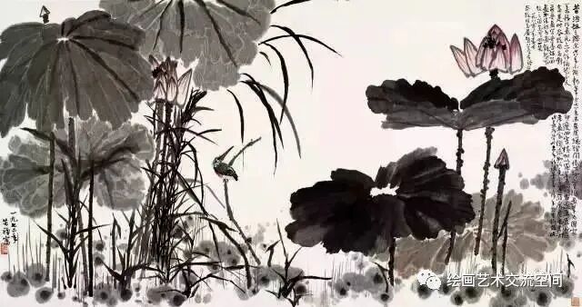 讲笔墨,初讲可以说“:线者为笔,染者为墨”,易懂易入手。进而应当明了“笔中有墨,墨中有笔”:用墨无笔,古人称之为“墨猪”,它有肉无骨;用笔无墨是行笔间缺乏墨色浓淡干湿的变化。其实“笔”与“墨”分不开,所以叫“笔墨”,它是一种表现美丽的手段过程。如同地球公转和自转:为表现意象造形的美服务,是“公转”;它也有美的自我表现,是“自转”。笔墨离开了这个意思,那就是“耍笔墨”,那不是“笔墨”,更不是写意画。