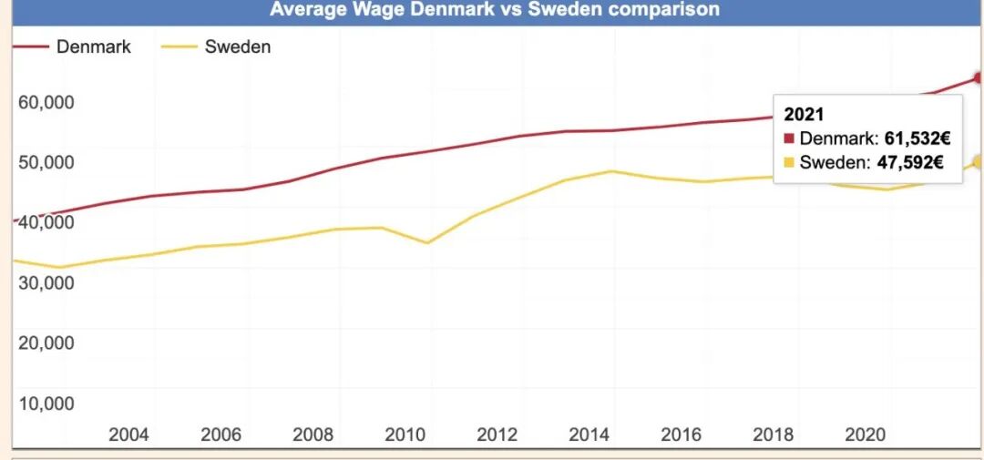 丹麦与瑞典的薪资对比,差距竟然有20%之大↑