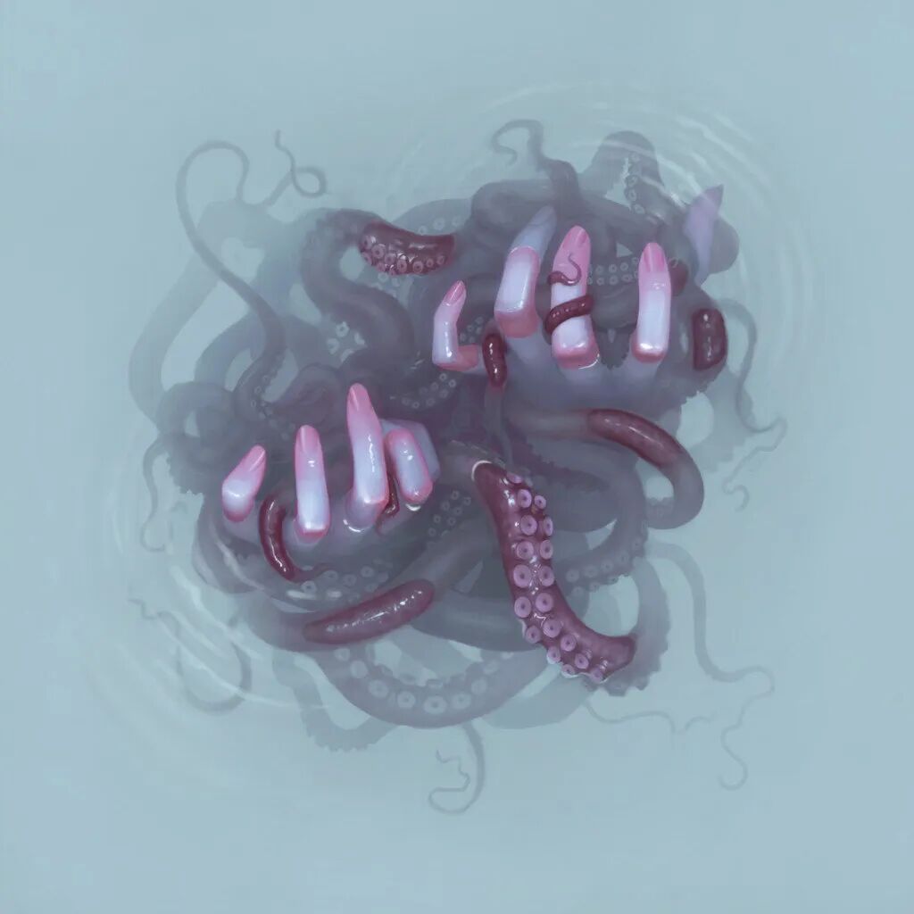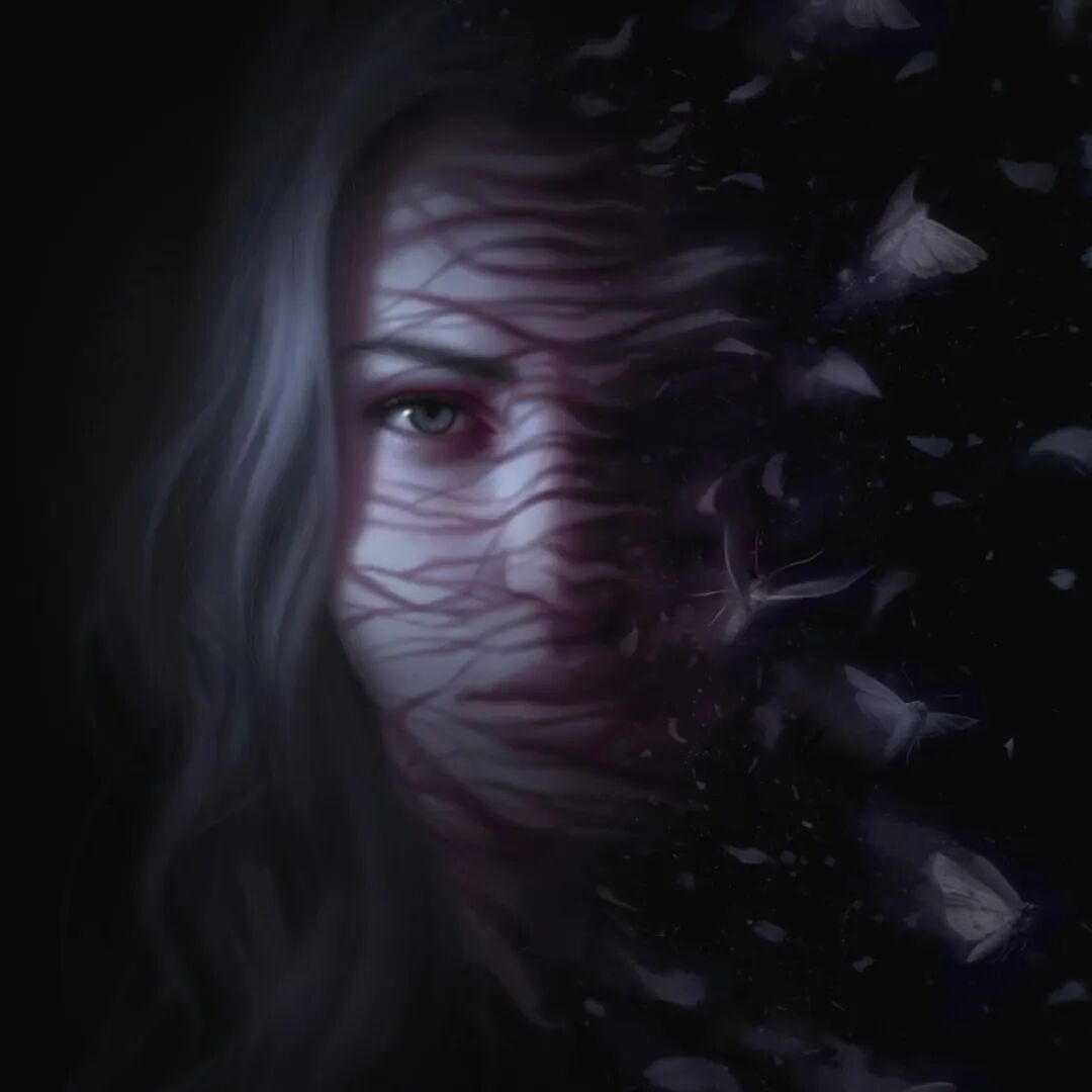 个人项目《夜曲》主色调均是灰暗朦胧的灰色,暗黑柔美相融合的主题是Miranda所追求的,飞蛾、蛇、触手和水面也是她作品中常见元素,她十分擅长利用光影和色彩营造出神秘冷淡的氛围感。