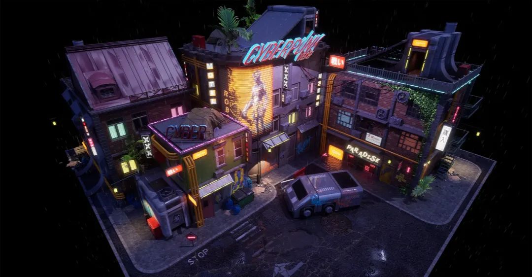 使用SD/MD这两款软件分别快速制作招牌文字贴花,雨棚,窗帘等资产,并进一步的增强场景的故事性与艺术深度。